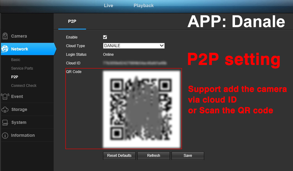 > Приложение для телефона : Danale(IOS,Android), Если камера Необходимо добавить в сетевой видеорегистратор , Используйте управление приложением NVR
