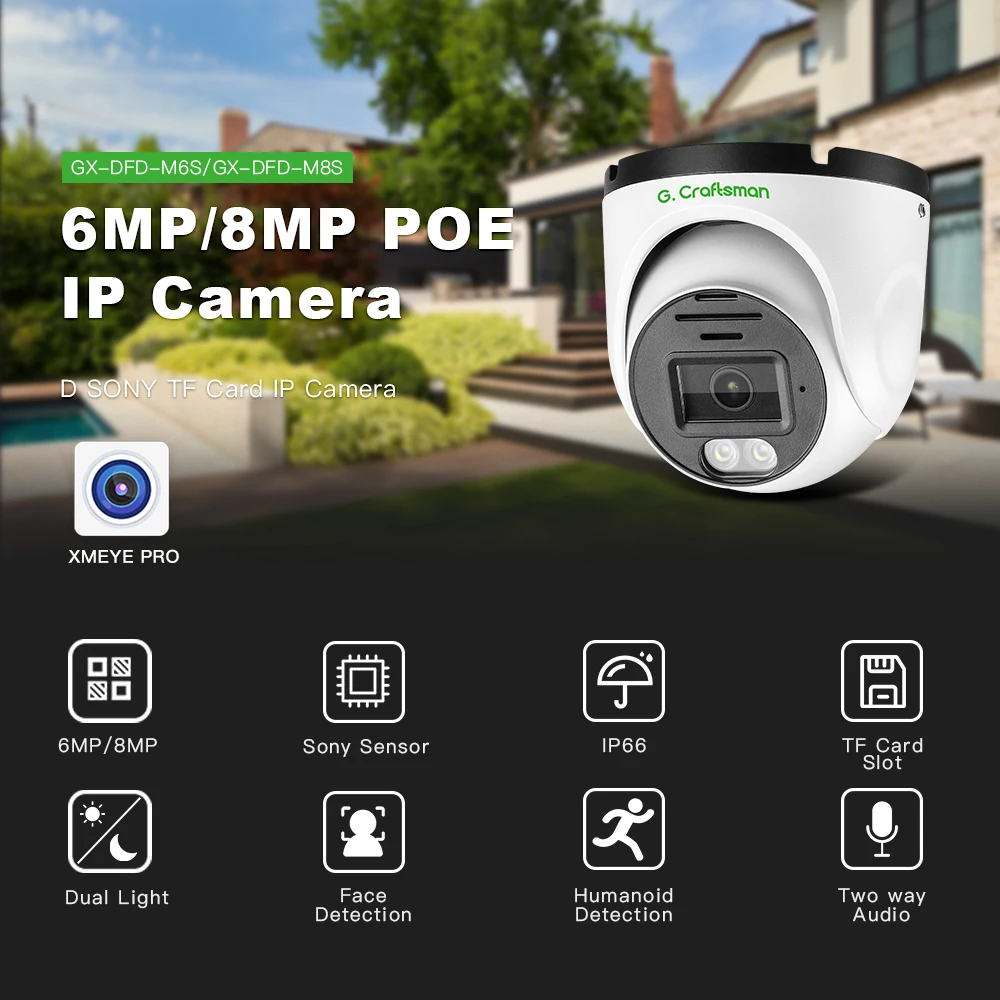 IP-камера видеонаблюдения XMeye G.C SONY 6MP 8MP 4K POE с поддержкой SD-карты