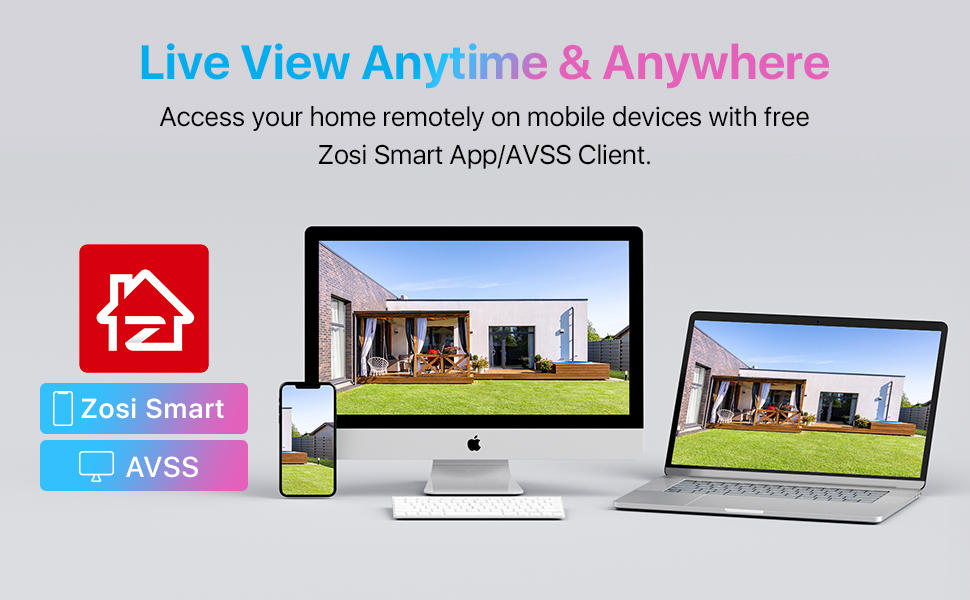Доступ к вашему дому удаленно на мобильных устройствах с бесплатным Zosi Smart App/AVSS Client.