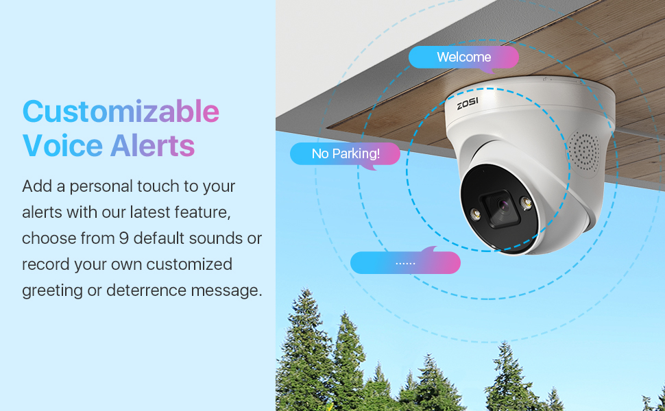 Добавьте индивидуальный подход к своим предупреждениям с помощью нашей последней функции, выберите один из 9 звуков по умолчанию или Запишите свое собственное индивидуальное приветствие или сдерживающее сообщение.