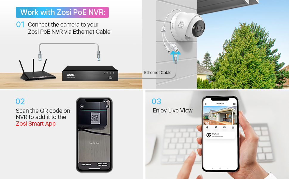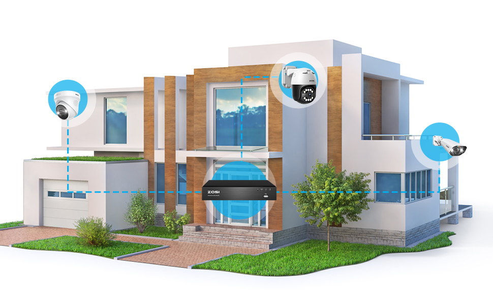 Настройте свой комплект камеры видеонаблюдения, добавив несколько камер в сетевой видеорегистратор ZOSI PoE, чтобы защитить везде в вашем доме и на работе.