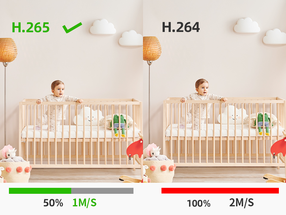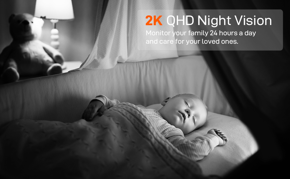 Превосходное ночное видение предлагает вам реальные сцены даже в условиях темноты. Вы можете видеть своего ребенка или питомца в 2 раза четче, чем обычное разрешение 1080p.