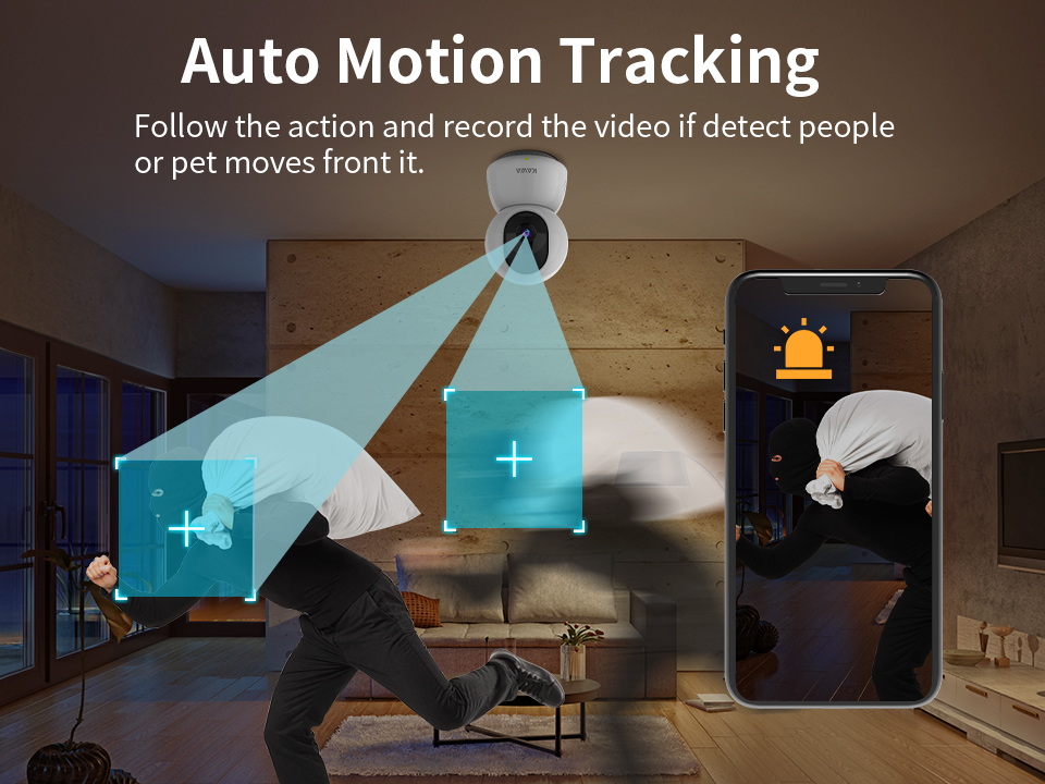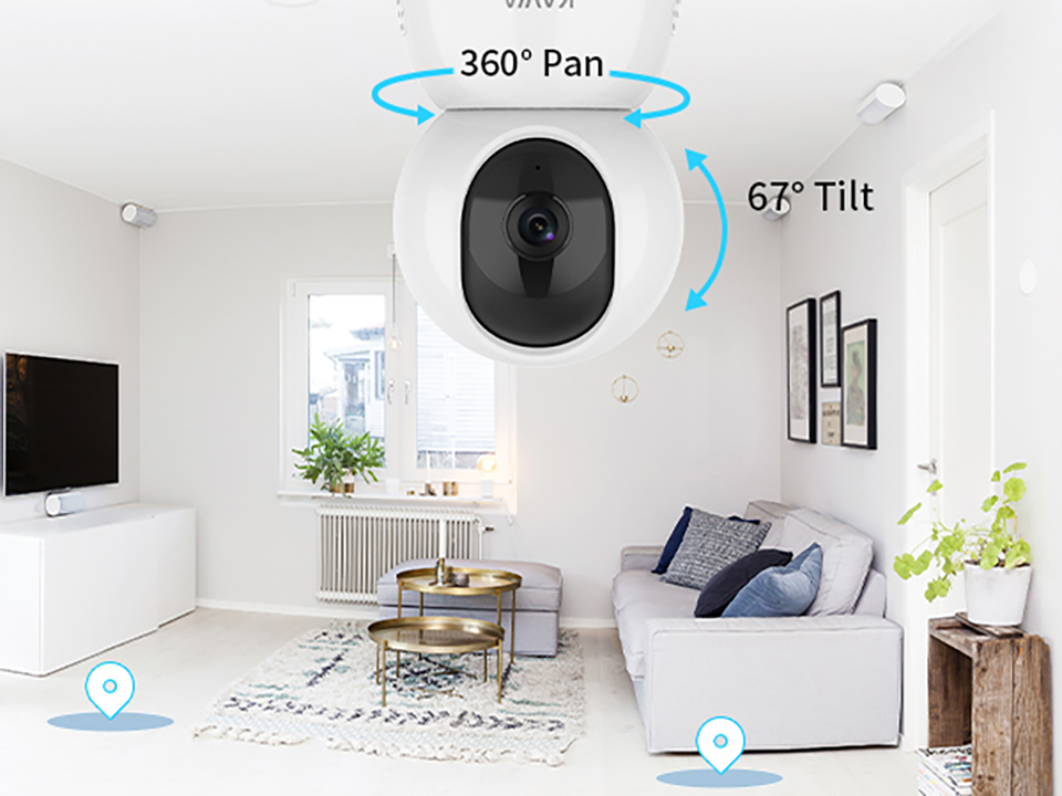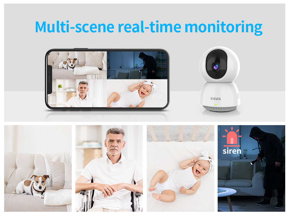 Каждый угол покрыт панорамой на 350 ° и легким наклоном 67 ° с помощью удаленного управления приложением KAWA IOT App, наша внутренняя камера видеонаблюдения очень подходит для наблюдения за вашим ребенком, пожилыми людьми и домашними животными.