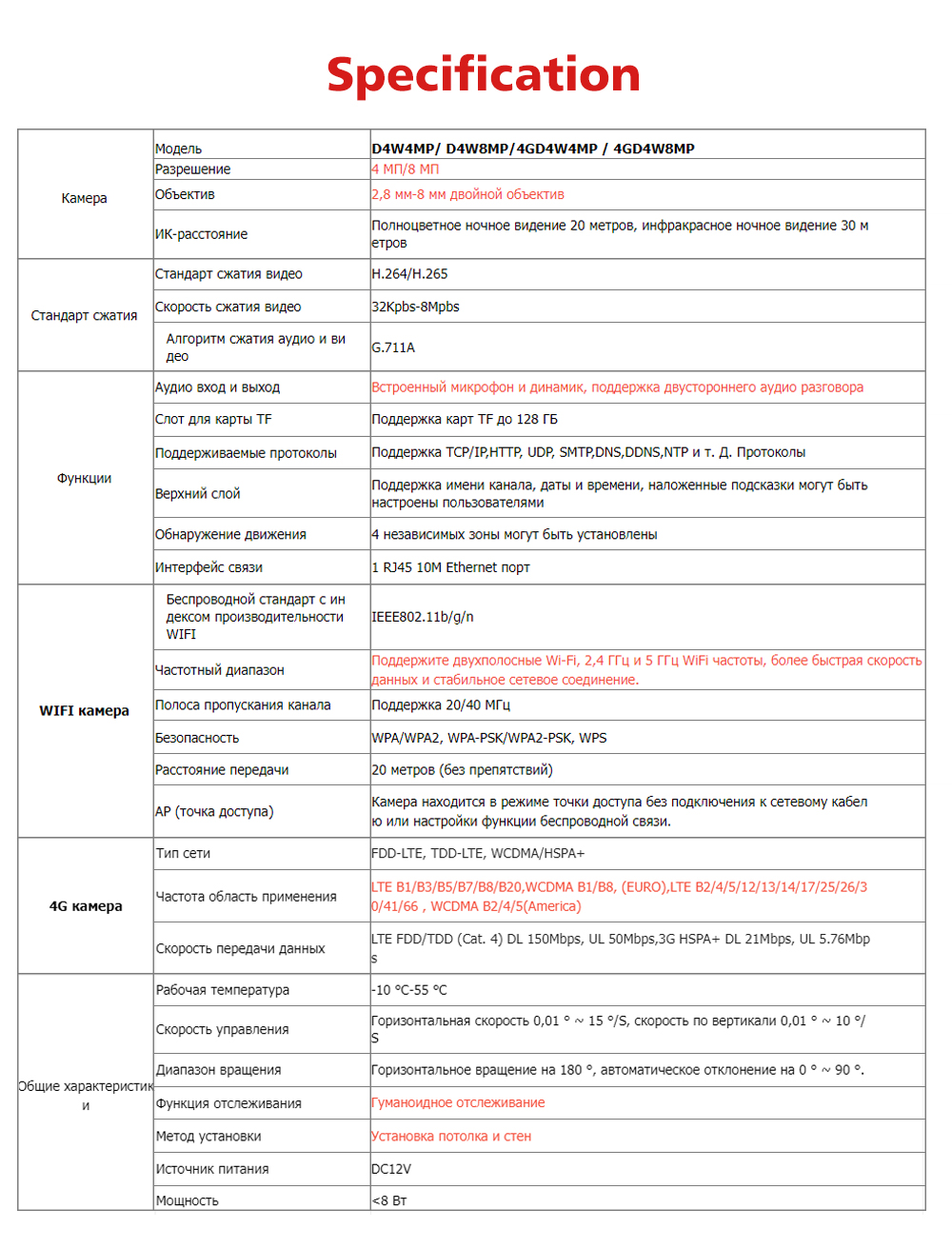 *WIFI или 4G опционально, 4 МП или 8 Мп Разрешение опционально;