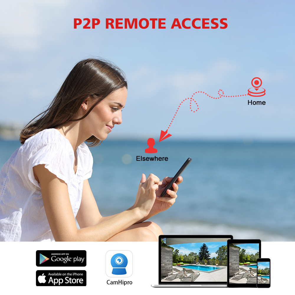 Захват четких целей мониторинга и автоматическое отслеживание движения человека, а также push-оповещения по электронной почте или уведомления на ваш телефон.