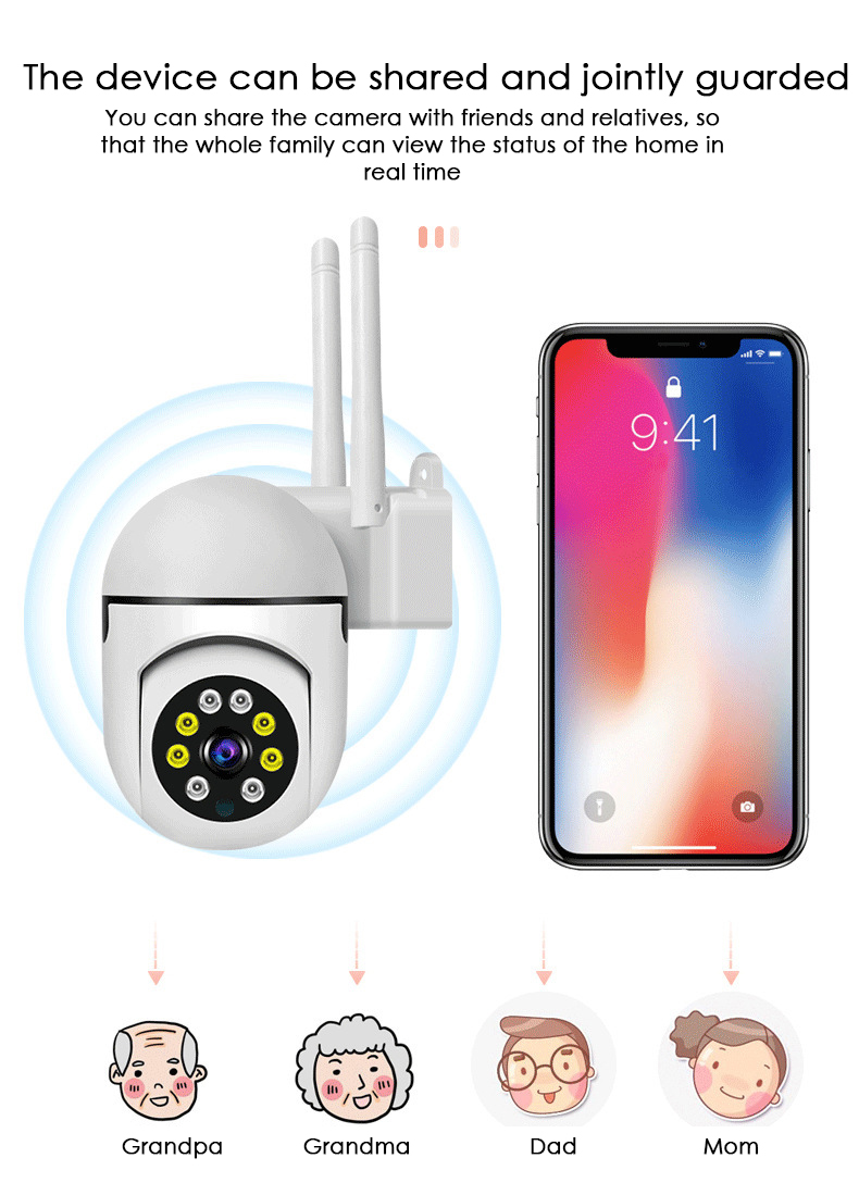 4. Устройство можно совместно использовать и охранять, а камеру можно использовать совместно с близкими и друзьями, чтобы вся семья могла просматривать состояние дома в режиме реального времени.
