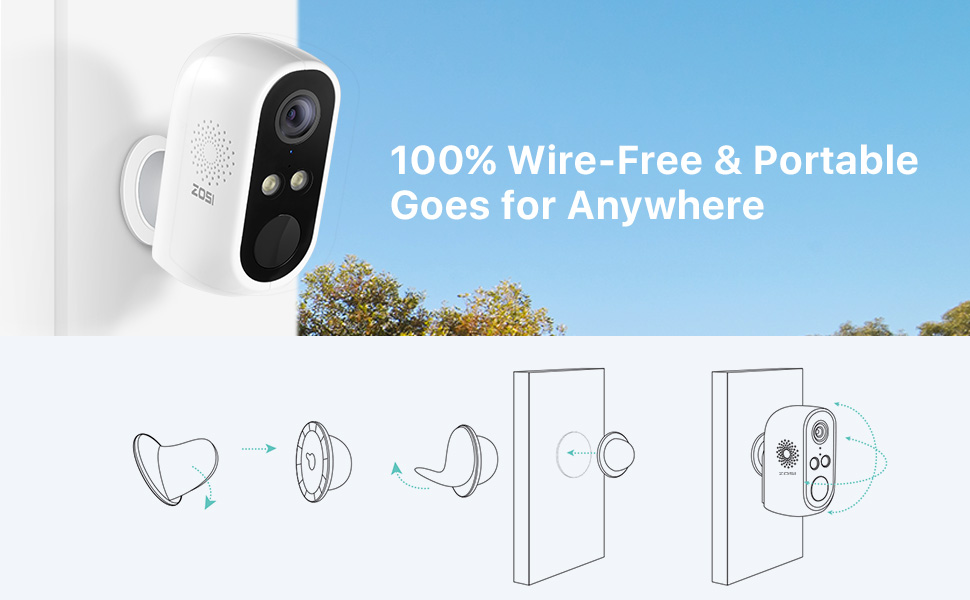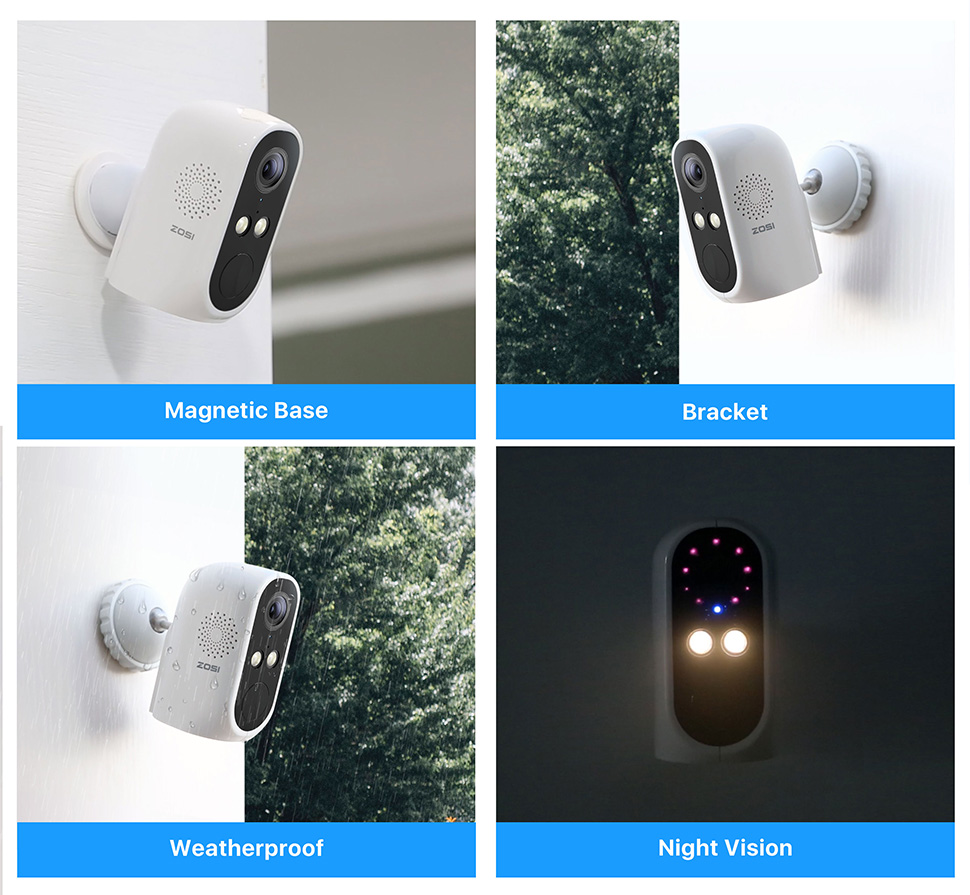ZOSI WiFi с питанием от аккумуляторной батареи 1080P Full HD Наружная внутренняя IP65 Всепогодная безопасность PIR Detection Беспроводная IP-камера