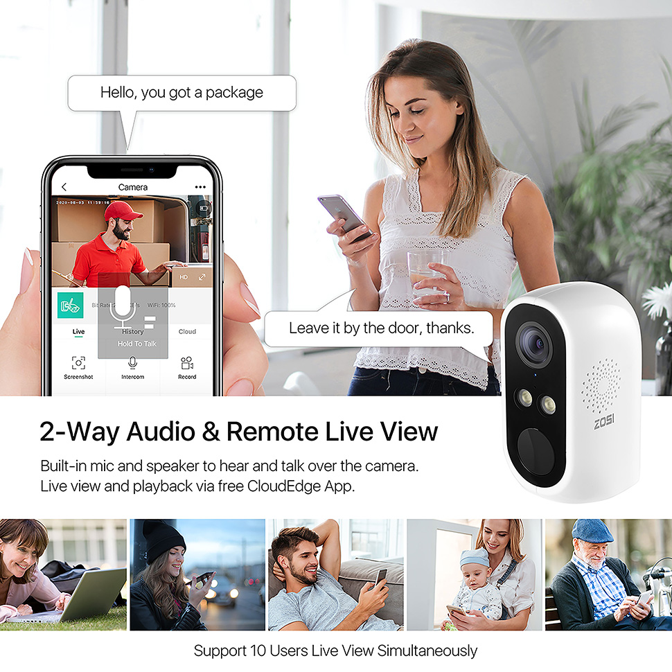 Эта WiFi-камера с мощным динамиком и микрофоном с шумоподавлением и подавлением эха позволяет слушать и разговаривать со своими семьями, персоналом или даже с нежелательными. Будьте полностью влюблены, даже когда вас там нет.