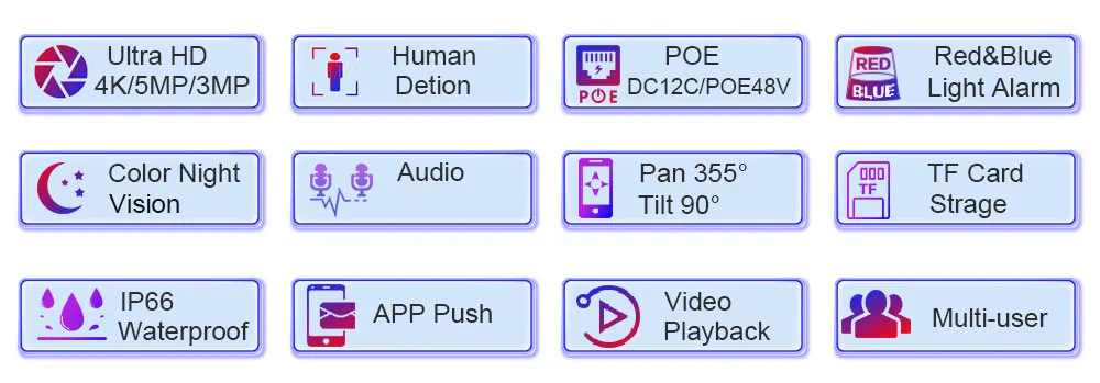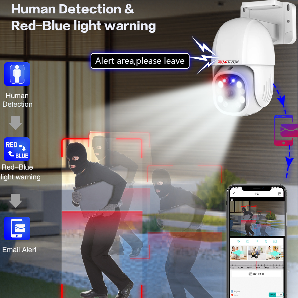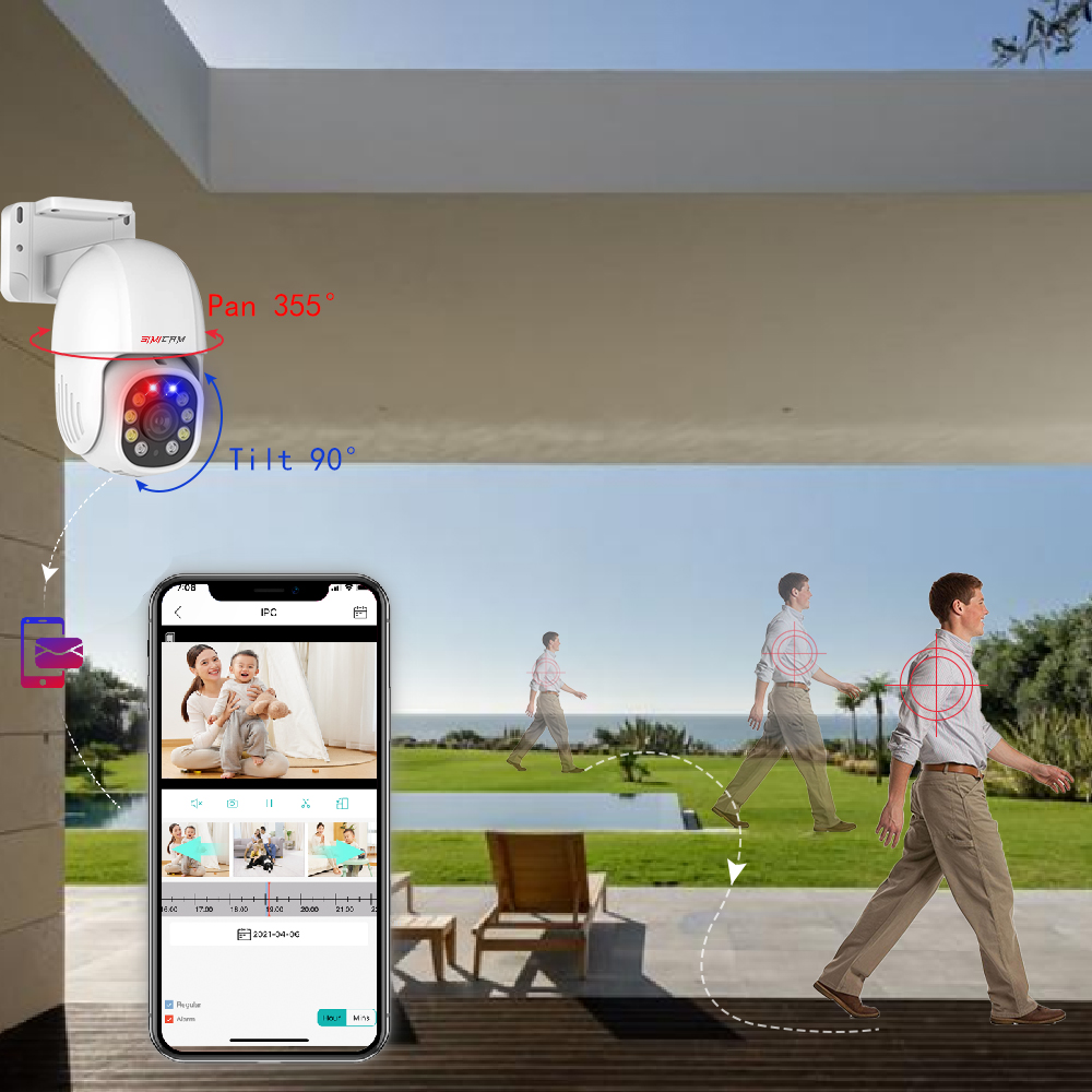 Функция интеллектуального обнаружения Ai, мониторинг движущихся объектов, автоматическое освещение. Поддержка линии смешивания, области, двустороннего обнаружения потока, для человеческой формы, простая настройка в приложении.