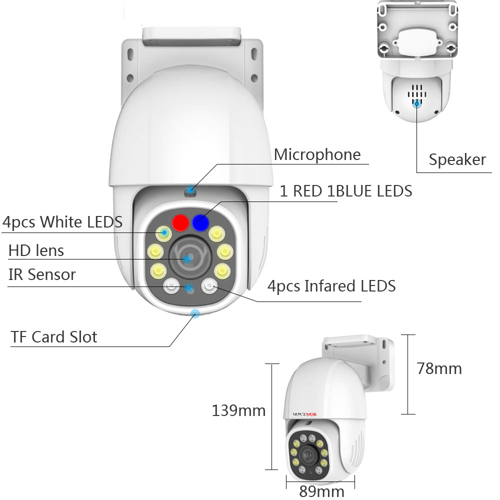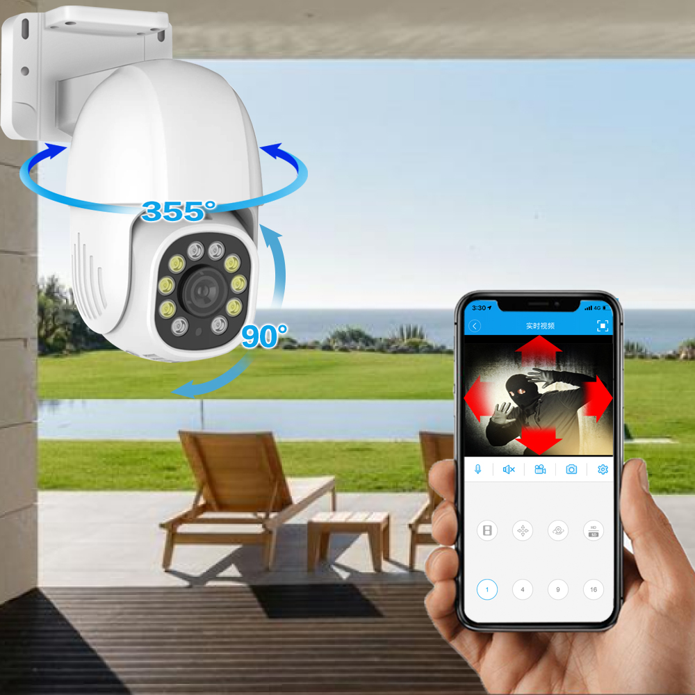 (1) Камера с цифровым зумом и круизными крышками 355 ° по горизонтали и 90 ° по вертикали, отслеживающая ваш дом или задний двор со всех сторон.