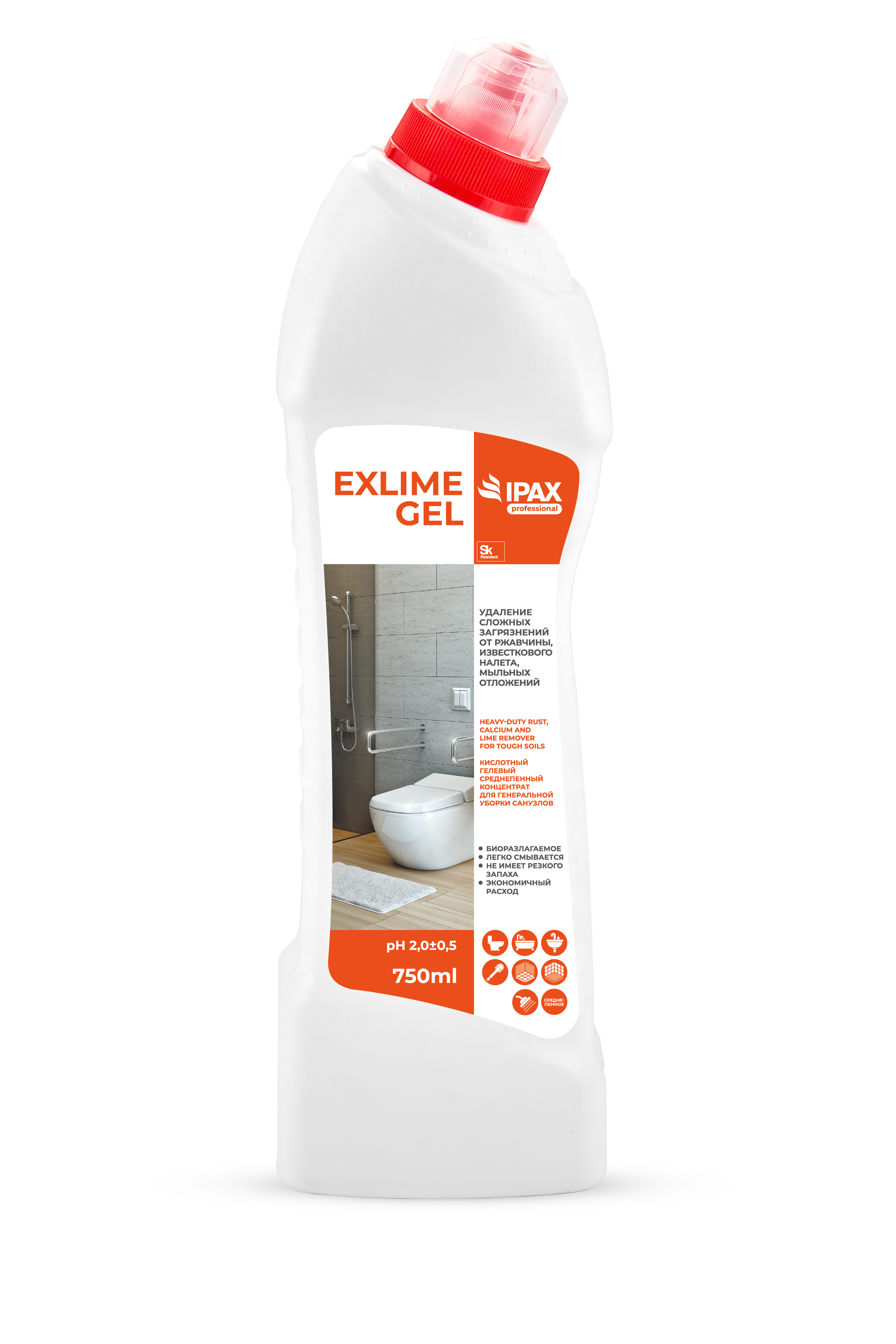 Описание: Профессиональное чистящее средство Exlime Gel для удаления сложных загрязнений в туалете и ванной комнате: для чистки унитазов, раковин, ванн, душевых кабин, кафельной плитки.