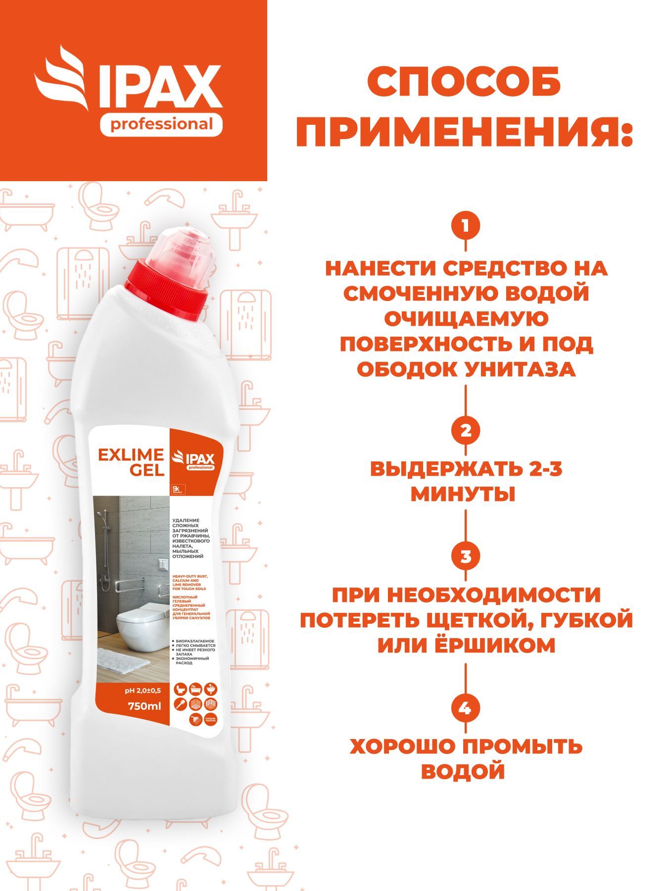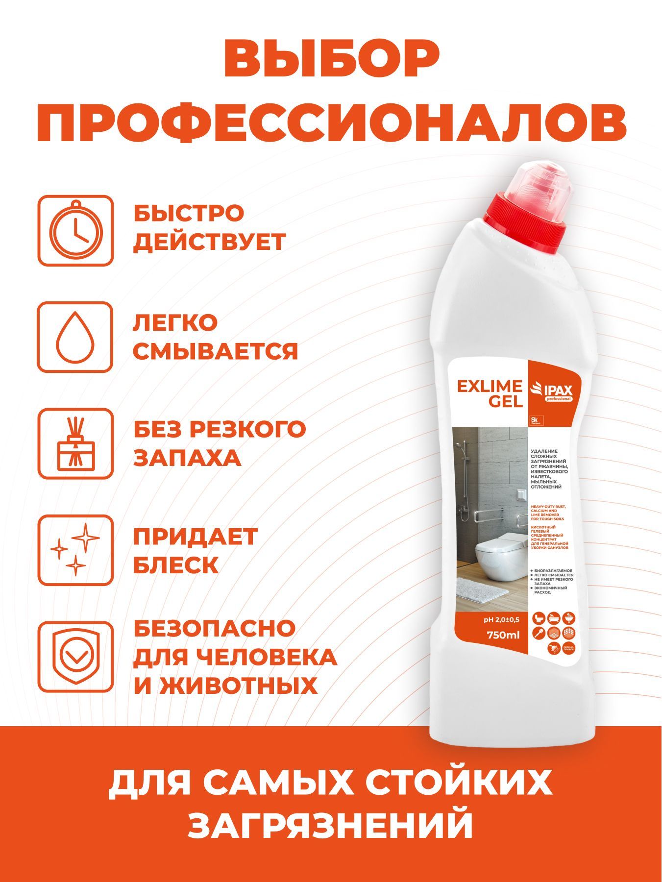 IPAX / Средство для чистки сантехники от сильного налета и ржавчины Exlime Gel, антиржавчина, утенок 750 мл