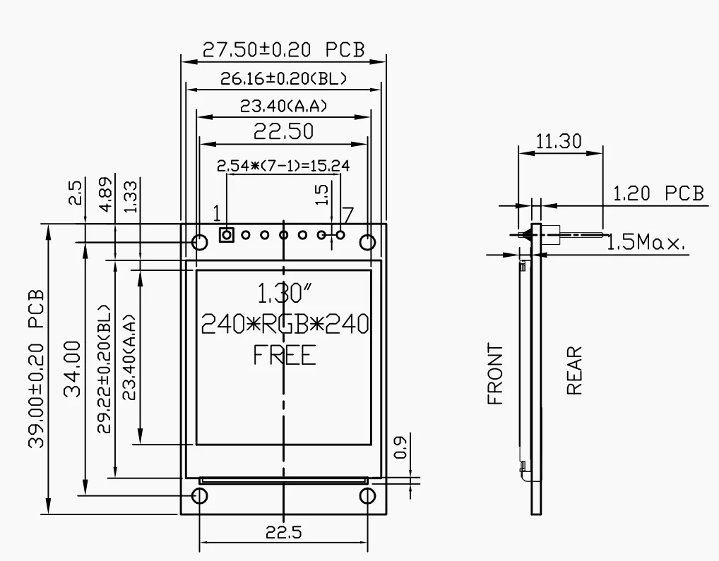 Разрешение: 240RGB * 240 точек
