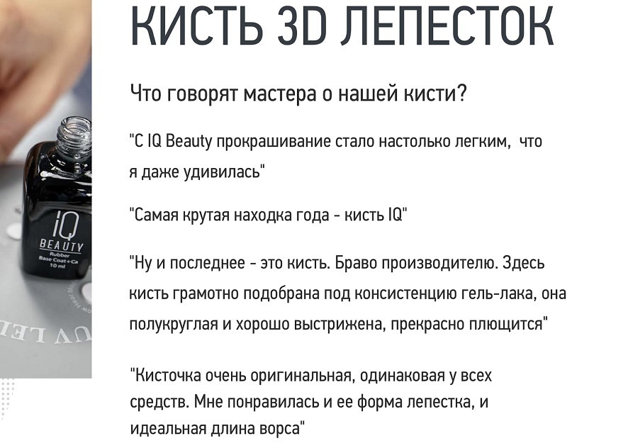 Описание: Каучуковый гель-лак IQ Beauty с кальцием – вторая ступень трехфазной системы маникюра. Высокопигментированное покрытие имеет самовыравнивающуюся формулу. Для идеального цвета достаточно нанесения одного слоя. Кисточка в виде лепестка 3D-формы позволяет удерживать каплю материала и удобна в использовании.