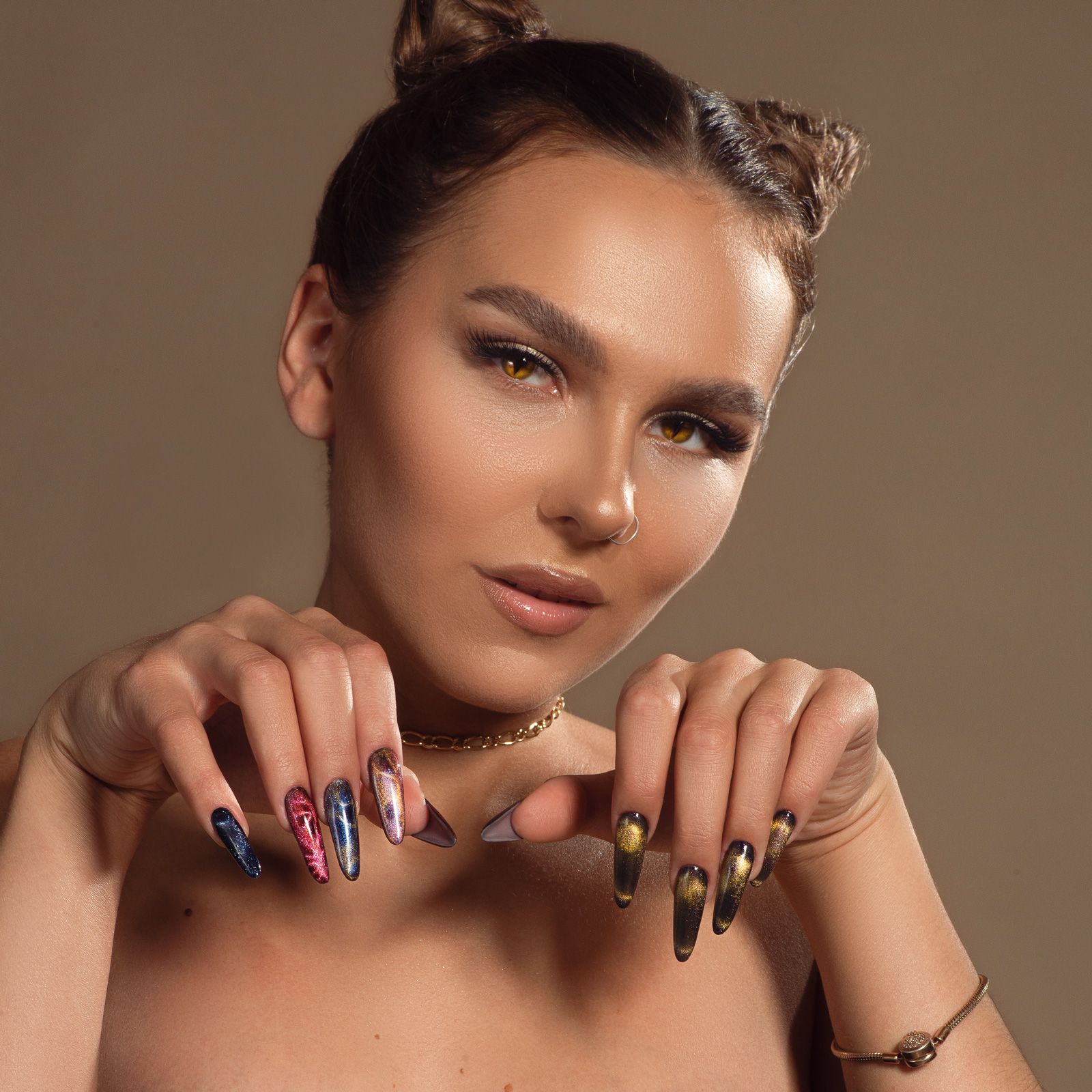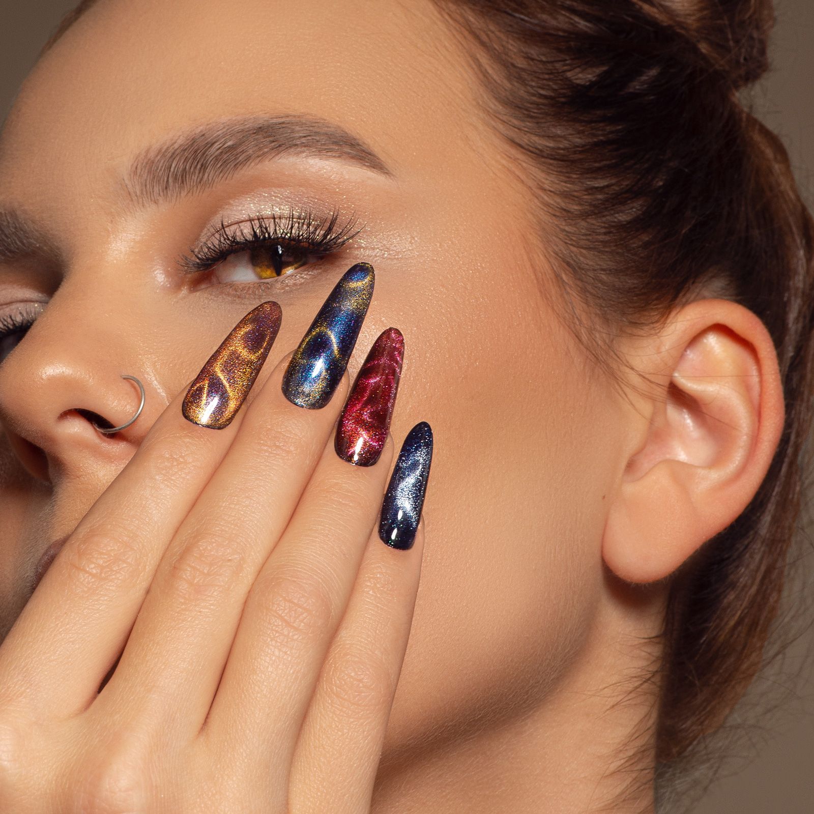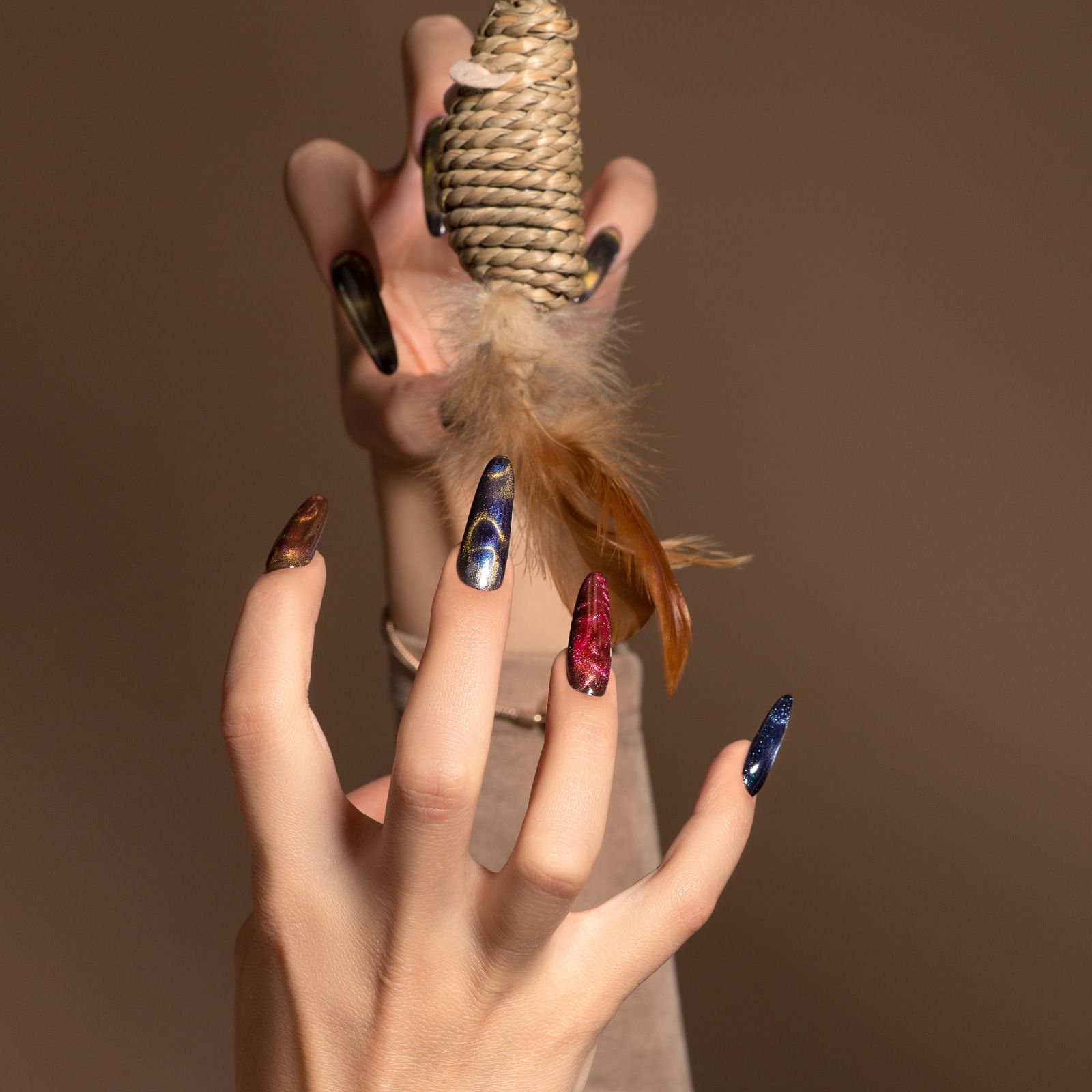Описание: Текстовое описание изображенияColor Diamond Cat EyeГоловокружительные хрустальные блики и многогранное сияние – все это о коллекции Color Diamond Cat с эффектом «кошачий глаз»! В коллекции 34 оттенка от светлых невесомых до глубоких и насыщенных. Хрустальная кошка наносится на подложку из цветного гель-лака или просто на базу, обладает уникальным объемным и сверкающим лучом. Пигмент быстро реагирует на магнит, потребуются минимальные затраты усилий и навыков для получения фееричного эффекта. Мелкий, магнитный шиммер собирается в искрящиеся блики и дарит восхитительный, стильный образ! Гель-лак средней консистенции и высокой плотности с возможностью создания более насыщенного цвета при нанесении на разную подложку.