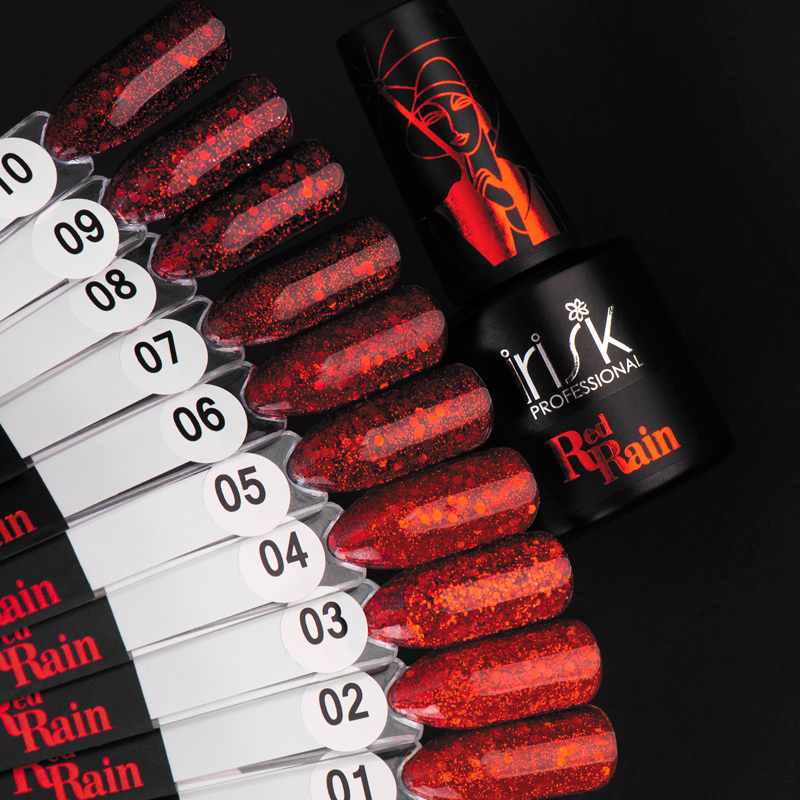 Описание: Новая коллекция ослепительных гель-лаков Red Rain. Чарующее сочетание яркости и шарма. Придай своему образу элемент насыщенного рубинового блеска!