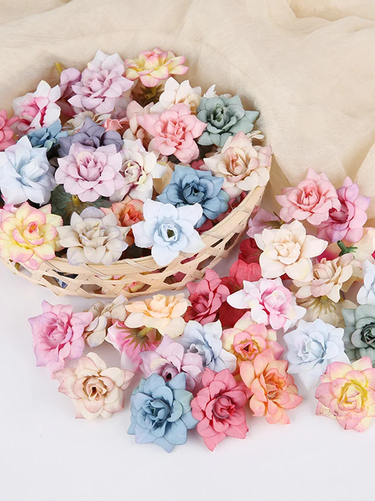 Искусственные цветы, 10 шт., 4,5 см, шелковая головка розы для свадьбы, дома, Новогоднее украшение, гирлянда «сделай сам», скрапбукинг, Подарочная коробка, цветы ручной работы