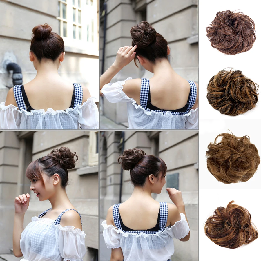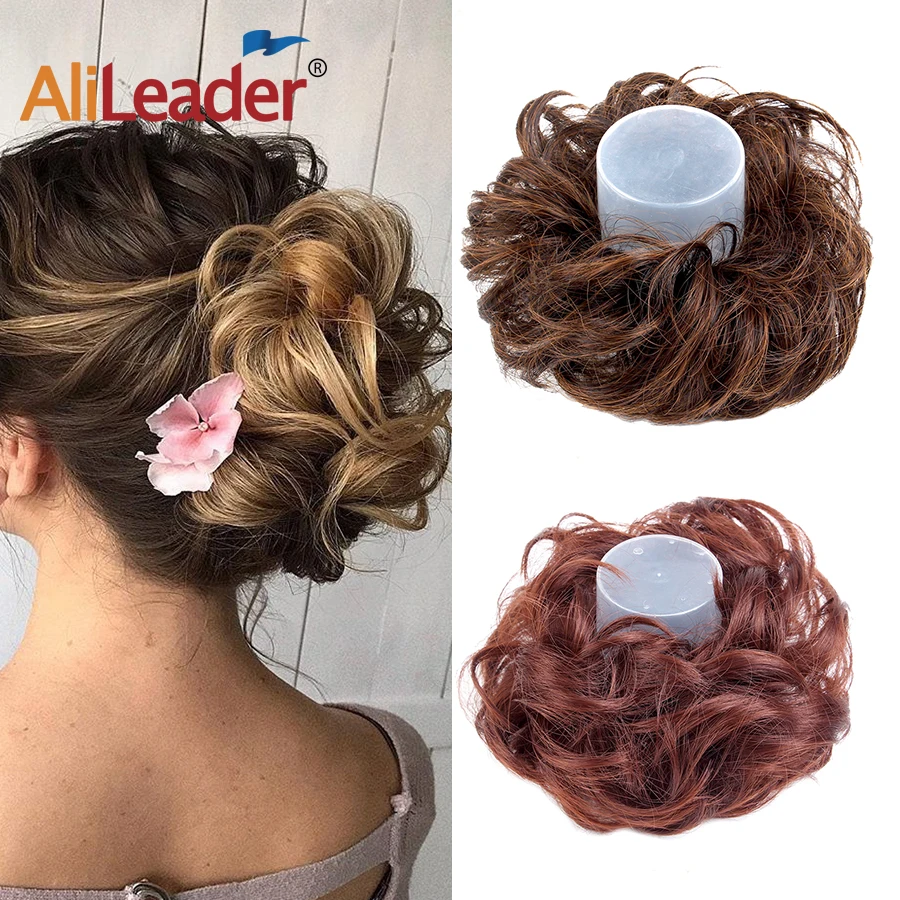 AliLeader синтетические эластичные волнистые вьющиеся волосы пончик вьющиеся шиньон волосы кусок для женщин