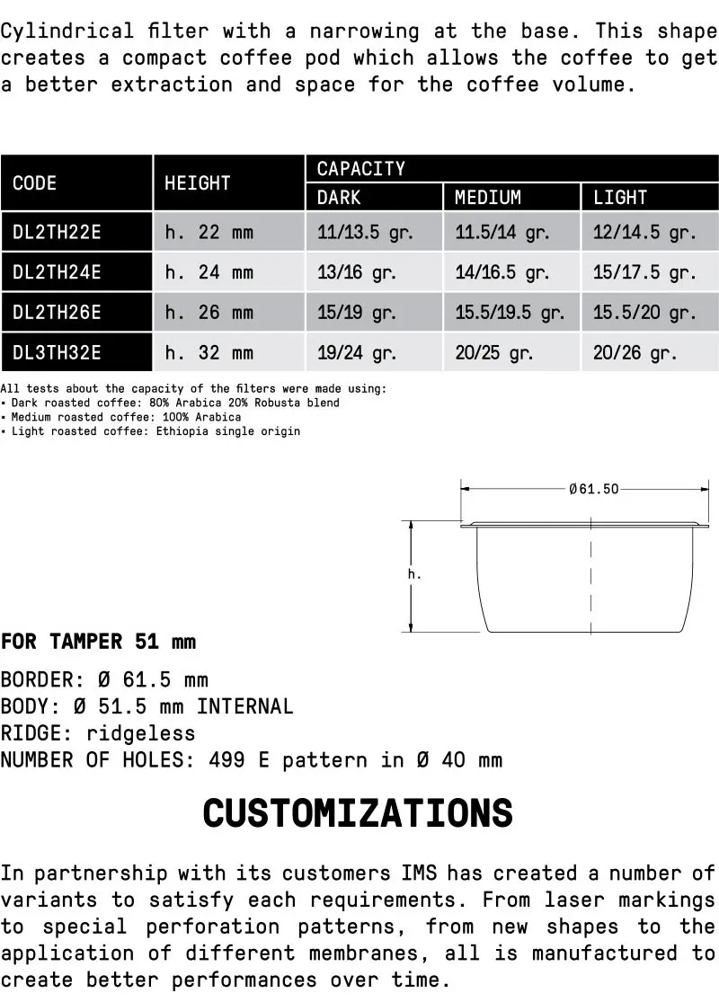 Италия производит итальянскую полуавтоматическую кофемашину IMS, точная лазерная миска для порошка, миска для кофе с фильтром 51 / 53 / 54 / 58 мм