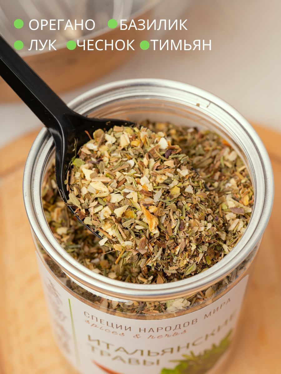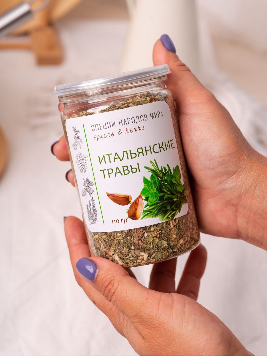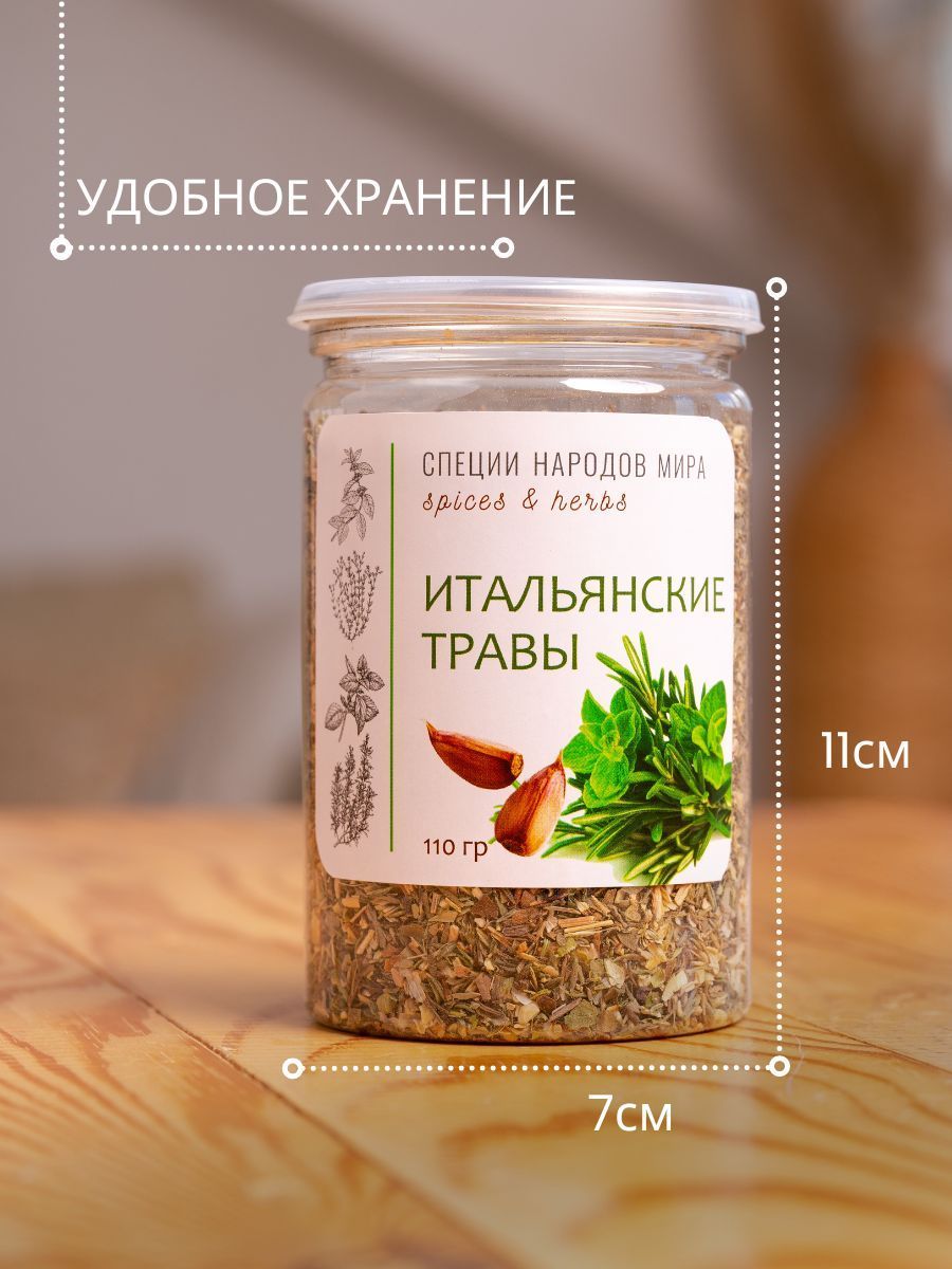 Описание: В каталоге бренда Organic Food вы всегда сможете купить приправу Итальянские травы (пряности итальянской кухни для салата, мяса, супов). Итальянские пряности - это смесь ароматных трав, которые наиболее популярны в Италии. Авторский микс специй составлен таким образом, что каждый компонент дополняет друг друга и не перебивает вкус. Травы, входящие в состав смеси, восполняют недостаток витамином и минералов в организме. Также они имеют свойство ускорять обменные процессы в организме, что очень полезно для тех, кто хочет похудеть. Сушеные овощи в составе придадут пикантности и особых ароматных нот вашим бульонам, заправкам и маринадам. Данную приправу добавляют в пиццу, в различные хлебобулочные изделия, в начинки для пирогов. Она является обязательным ингредиентом многих супов, овощных гарниров, запеканок и салатов, томатных и сливочных соусов бешамель. Прекрасно подходит ко вкусам всего мира. Если добавить перец, то букет сушеных трав послужит ярким акцентом к жареному, тушеному и запеченному мясу. Курица с чесноком на гриле или в маринаде для запекания заиграет новыми ароматами и вкусами с нашей универсальной приправой. Ценители ПП точно влюбятся в натуральный состав, а упаковка в прозрачную многоразовую пластиковую банку для сыпучих - это настоящая эстетика вкуса. Эти пряные сушеные травки прекрасно сохраняют свой аромат после сушки, так что добавляя в блюда немного смеси итальянских трав, вы получите изумительно пахнущее и безумно вкусное блюдо! Прекрасно проявляют себя в заготовке вяленых томатов с оливковым маслом, в овощных салатах со сметаной или домашним майонезом, как приправа для колбасы без глутамата. Приправы в банке с герметичной крышкой легко заменят знаменитый состав 12 овощей и трав. Итальянские травы в новой большой упаковке можно с радостью подарить учителю или воспитателю, подруге на новый год или сестре на новоселье. Пряности в ПЭТ банке с крышкой будут уместны на любой полке с бакалеей или подставке на вашей кухне. Для более мелкого помола советуем пересыпать приправу в мельницу.