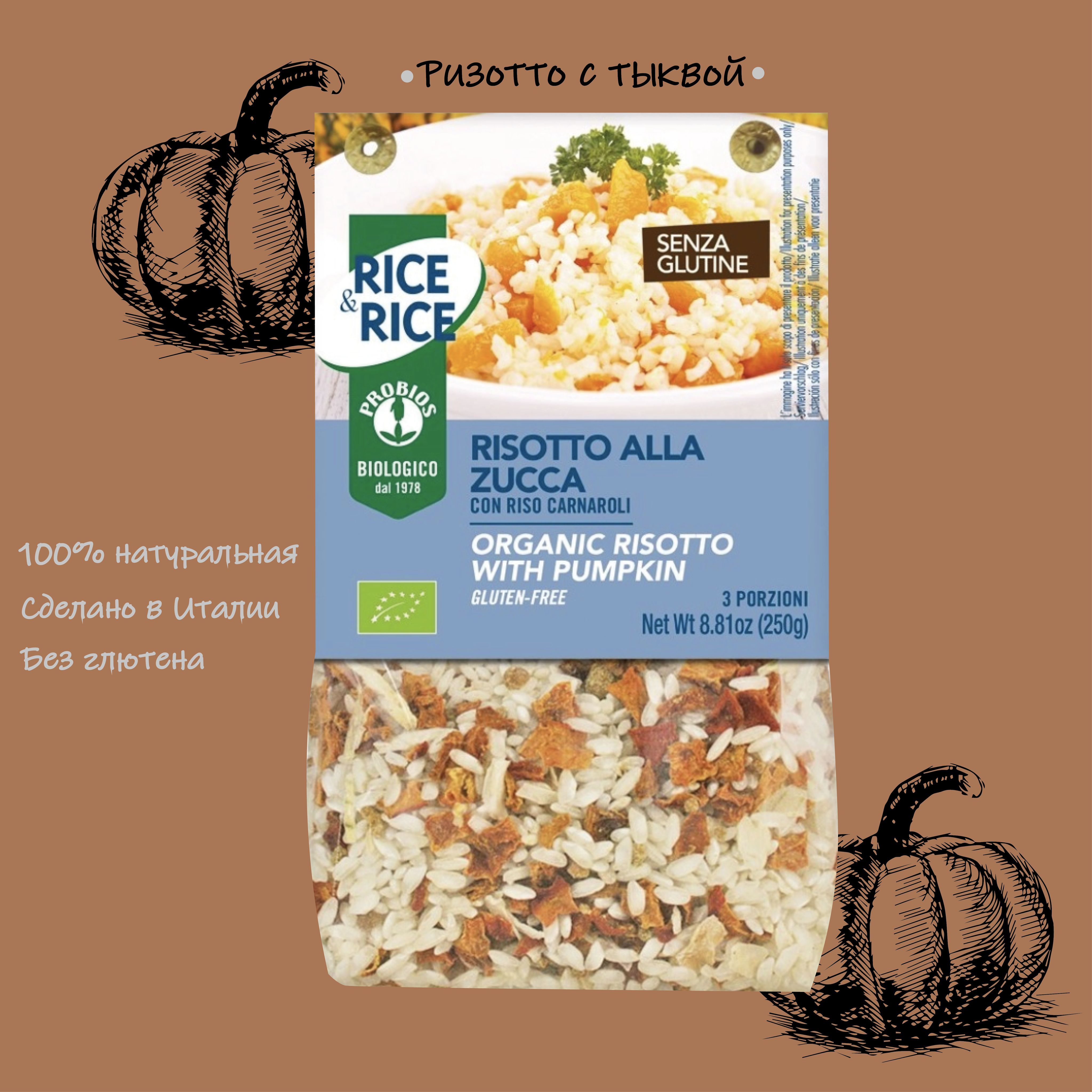 Итальянское Ризотто с Тыквой от Probios (Пробиос), без Глютена, Веган, 100% Натуральное, 250 гр