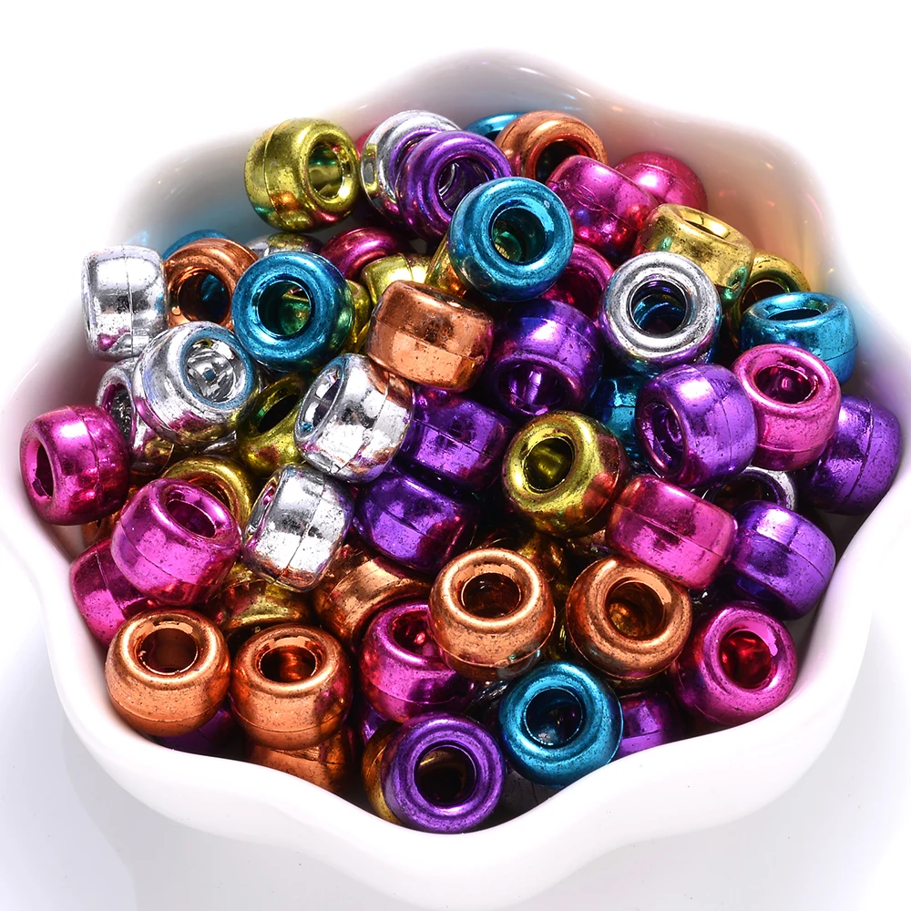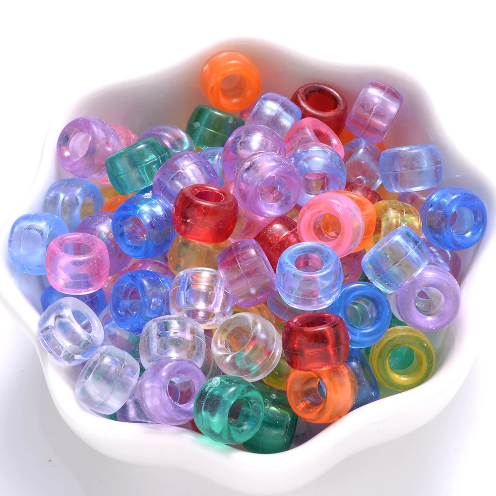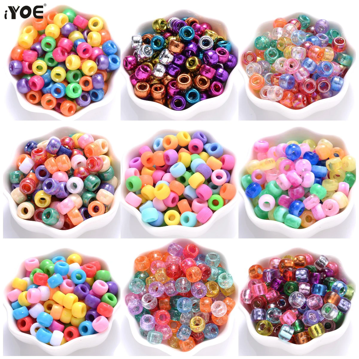 IYOE 50/100/200 шт 6x9 мм Смешанные блестящие акриловые бусины-разделители градиентные бусины с большим отверстием для изготовления цепочки для телефона DIY браслет