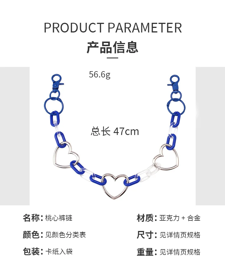 Punk Hiphop Long Resin Pentagram Heart Rock Trousers Hipster Pant Jean Keychain Ring Clip Acrylic Key Chains Women Accessories