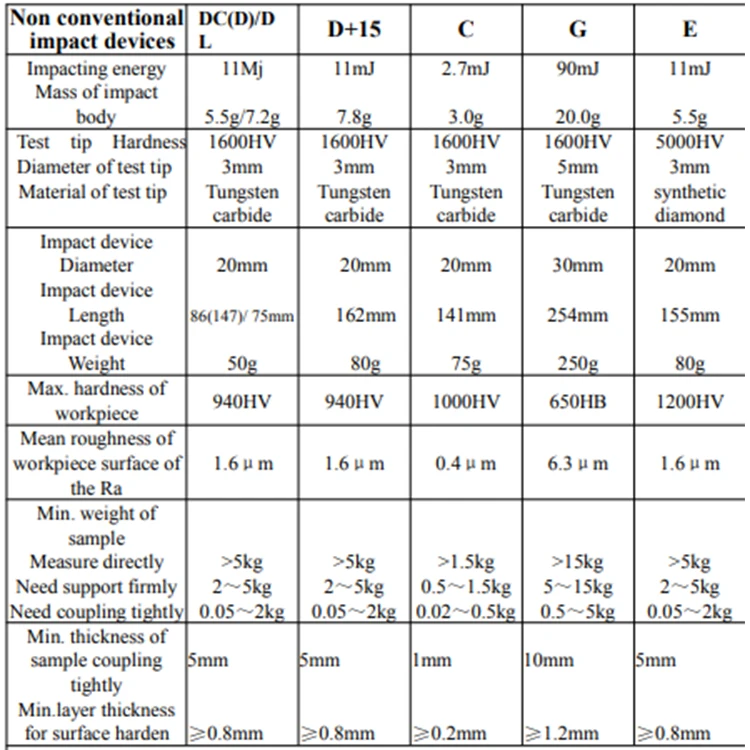 Диапазон измерения:(170-960)HLD,(17-68,5) HRC,(19-651)HB,(80-976)HV,(30-100)HS,(59-85)HRA,(13-100)HRB