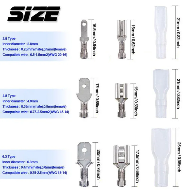 Размер: 2,8 мм, 4,8 мм, 6,3 мм