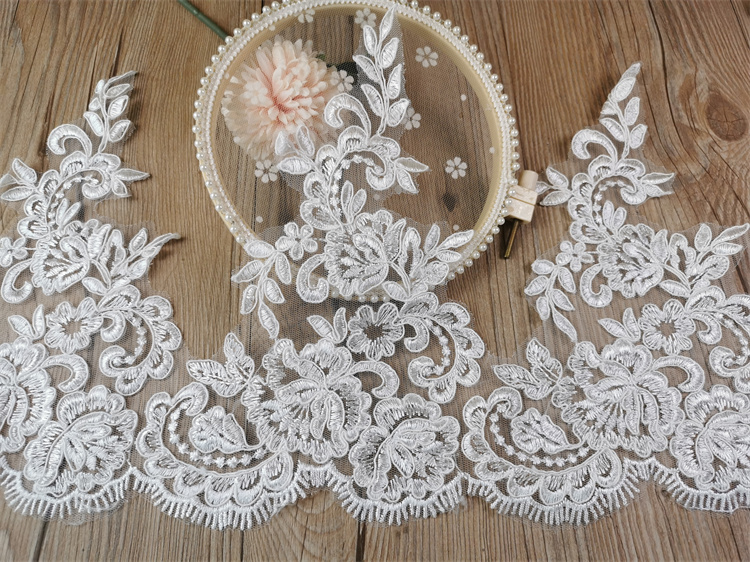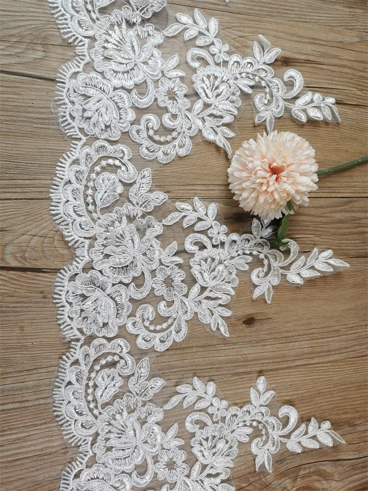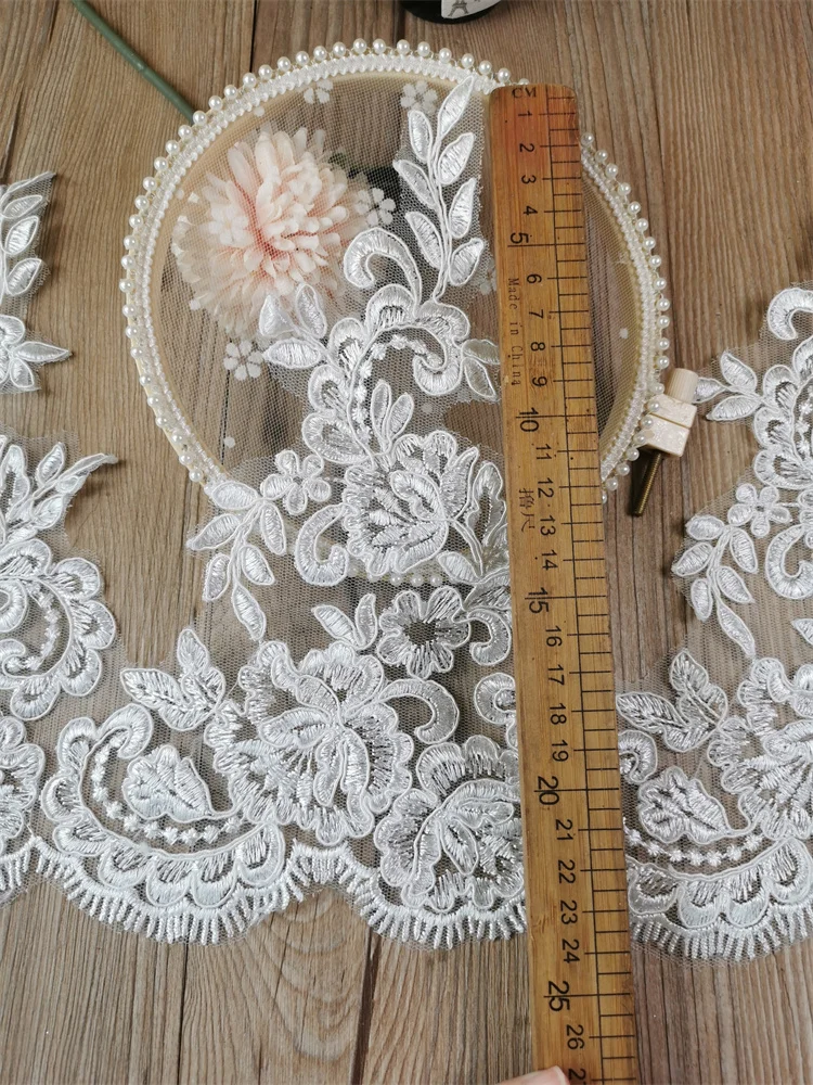 Изысканная Роскошная Венецианская сетка шириной 26 см с вышивкой цвета слоновой кости, цветок, венецианская сетка, искусственное шитье для свадьбы, Dec.