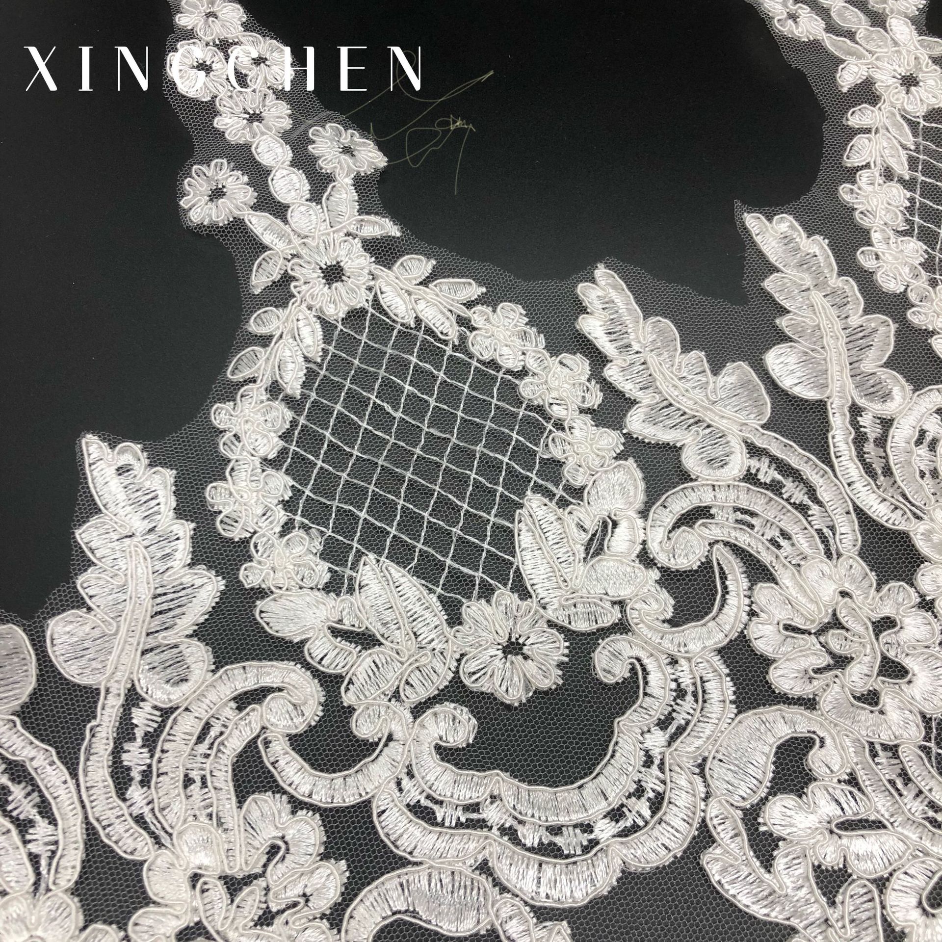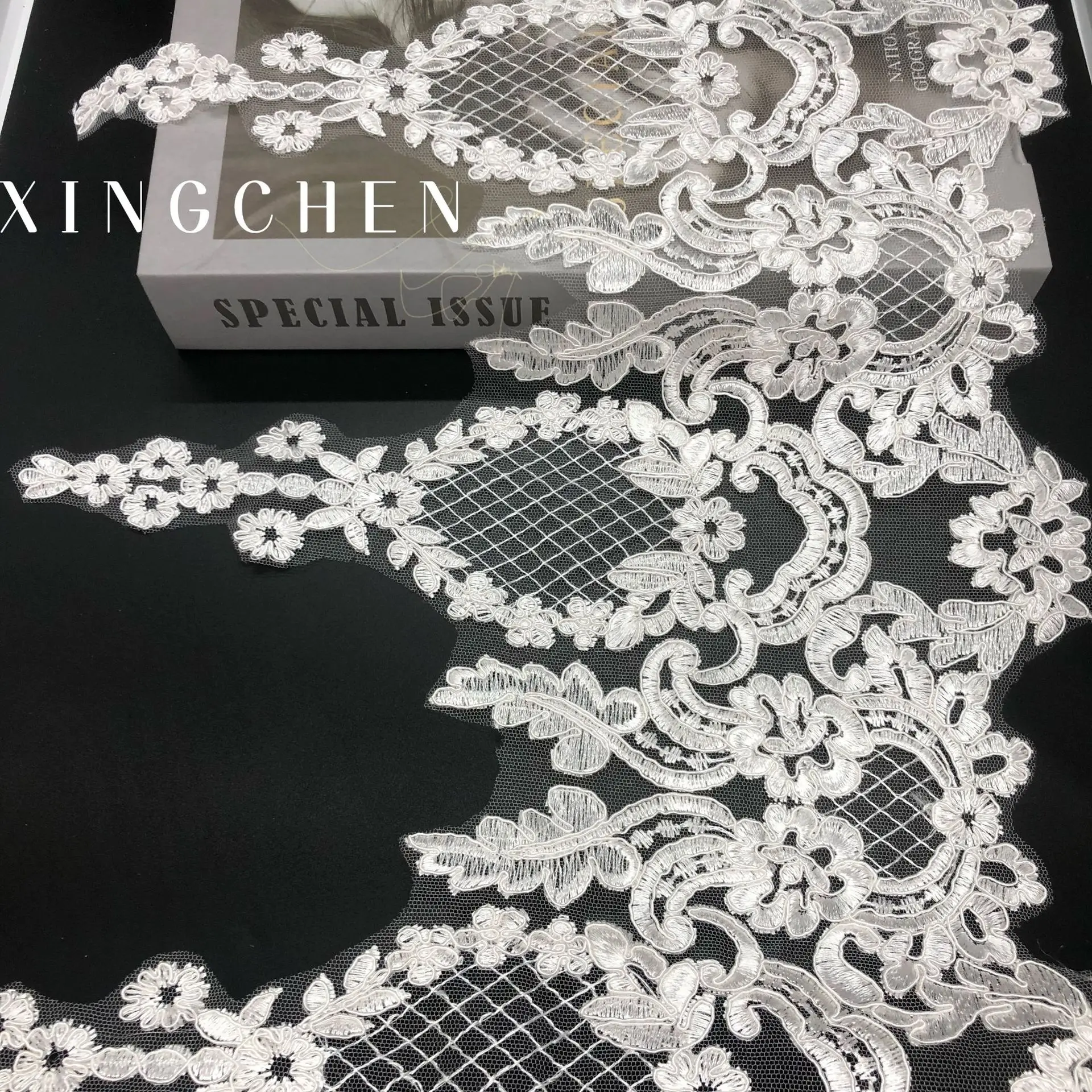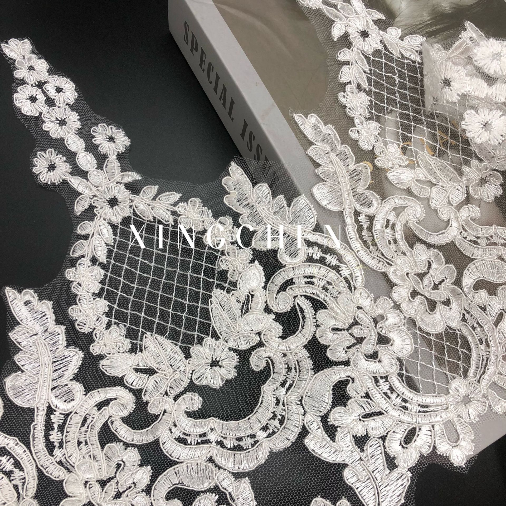 Изысканная ткань с блестками цвета слоновой кости, 1 ярд, венецианская Венецианская сетка, искусственное шитье для свадьбы, 32 см