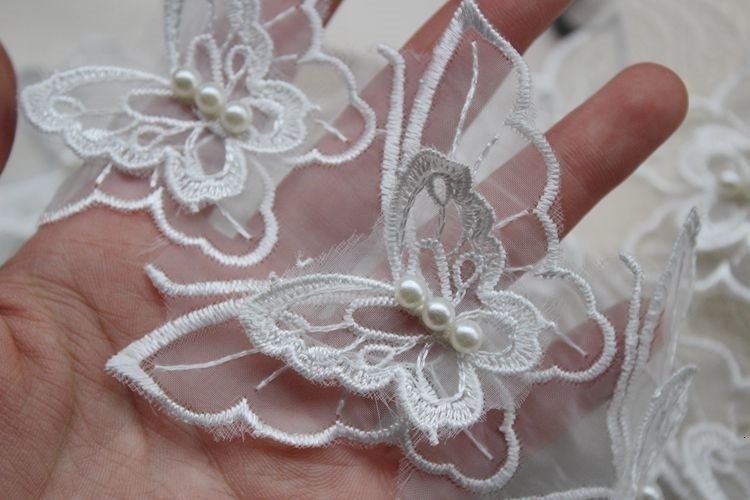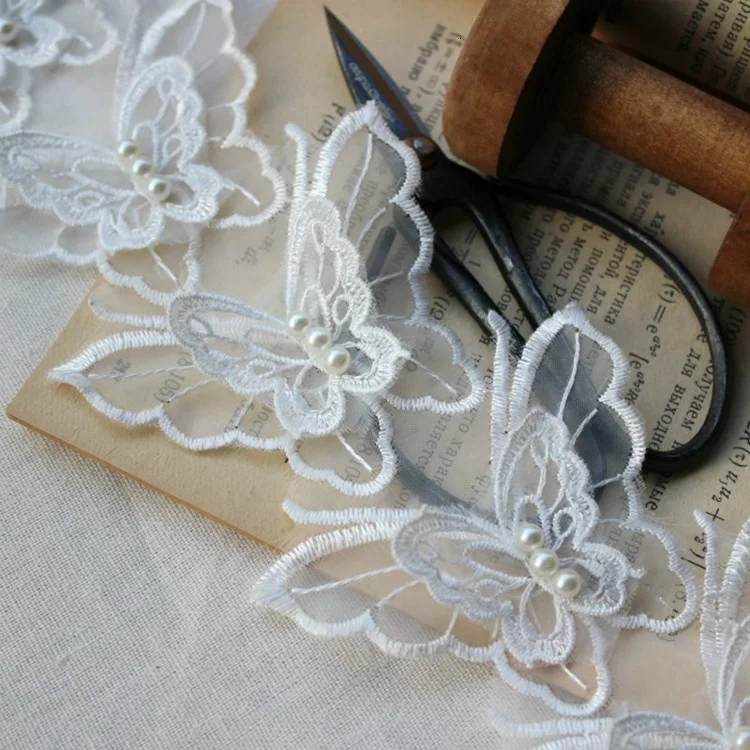 Изысканное Двухслойное вышитое бисером платье из органзы с бабочками шириной 8 см, кружевное свадебное платье «сделай сам», украшение для одежды и юбки