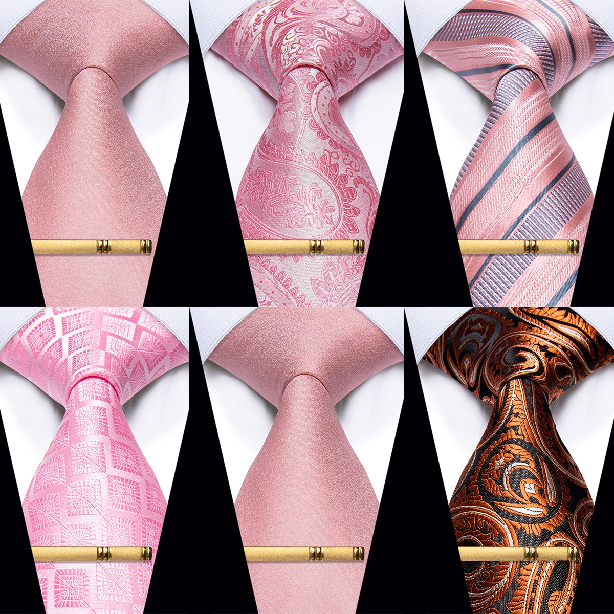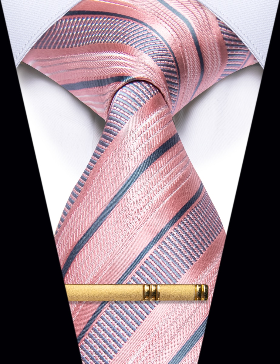 Изысканный розовый роскошный мужской галстук и зажим классические полосатые Пейсли клетчатые модные галстуки для мужчин