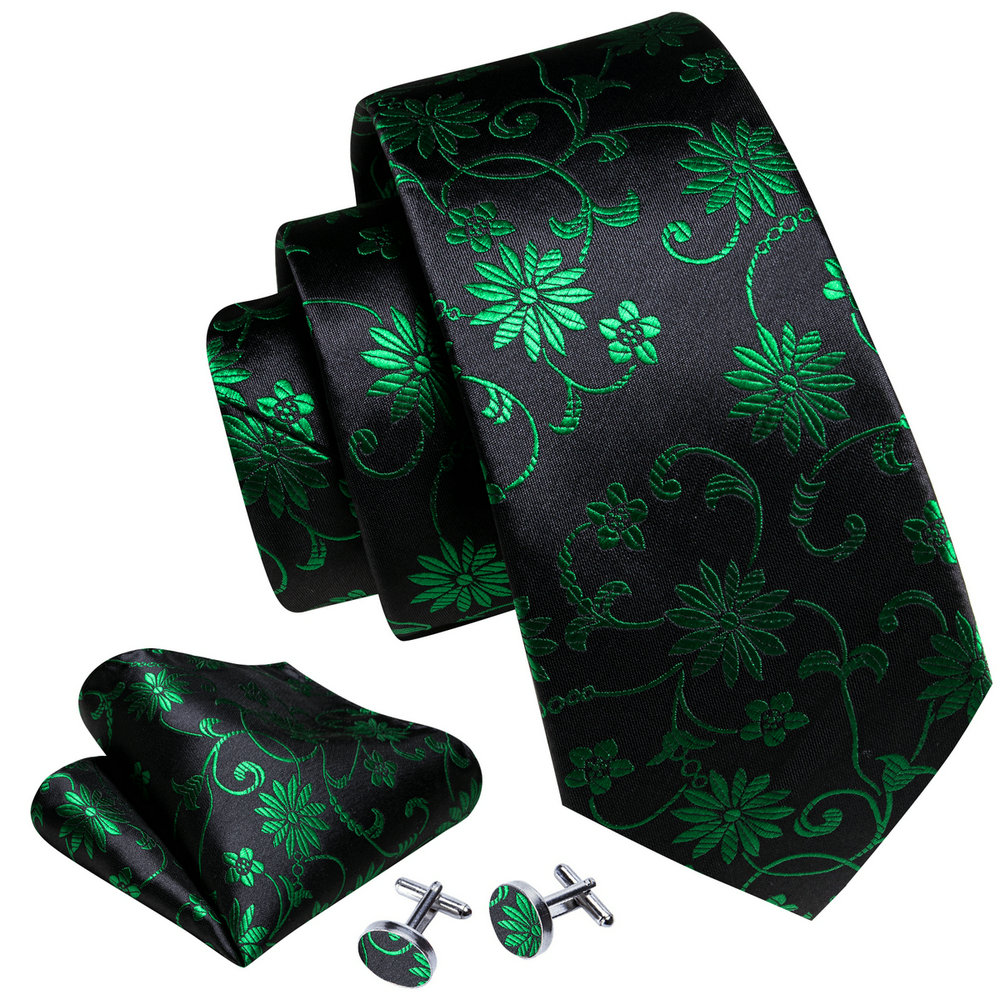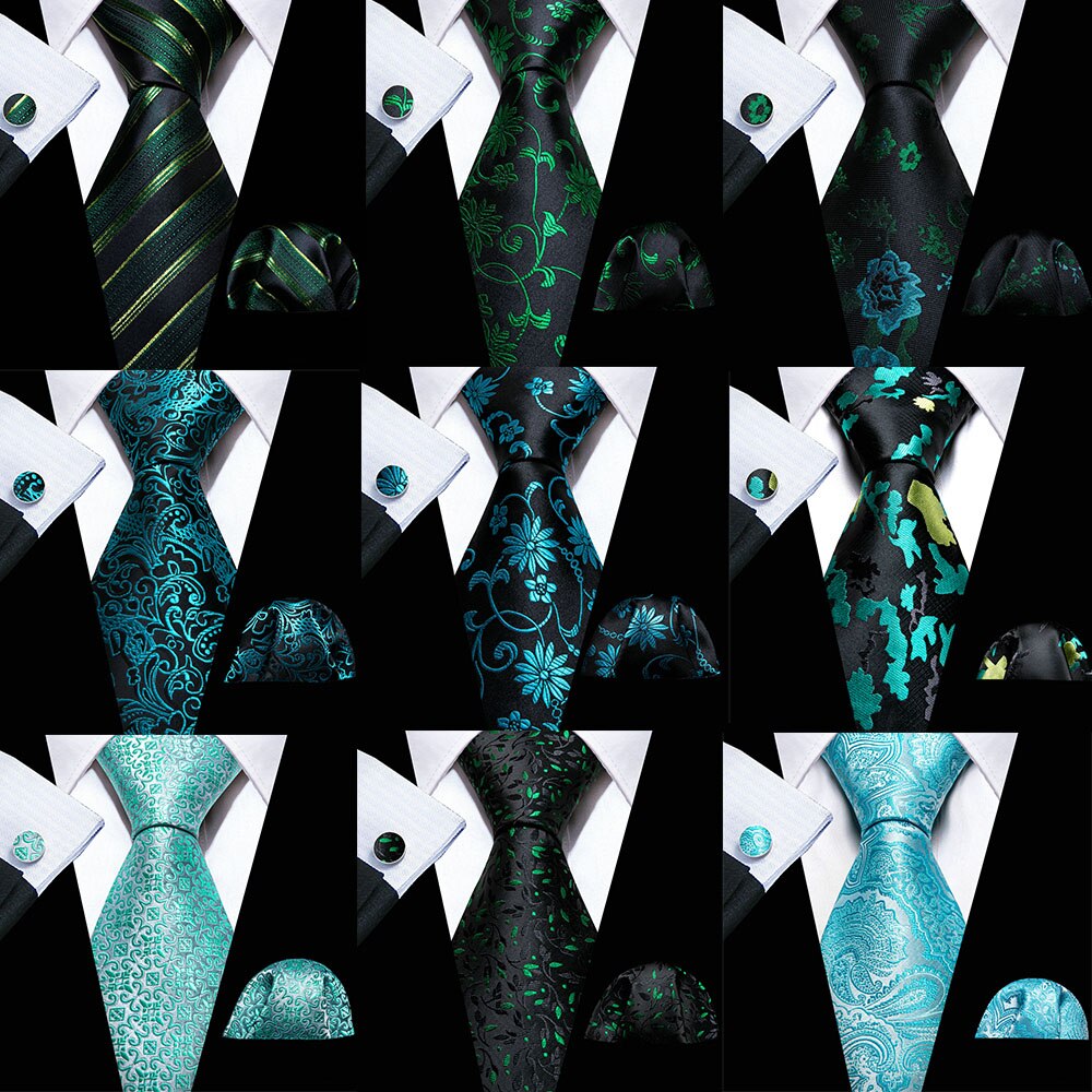 Изысканный зеленый и бирюзовый мужской галстук, Тканый Жаккардовый дизайн, галстук, носовой платок, запонки, свадебный подарок, деловой стиль, Barry.Wang FA-
