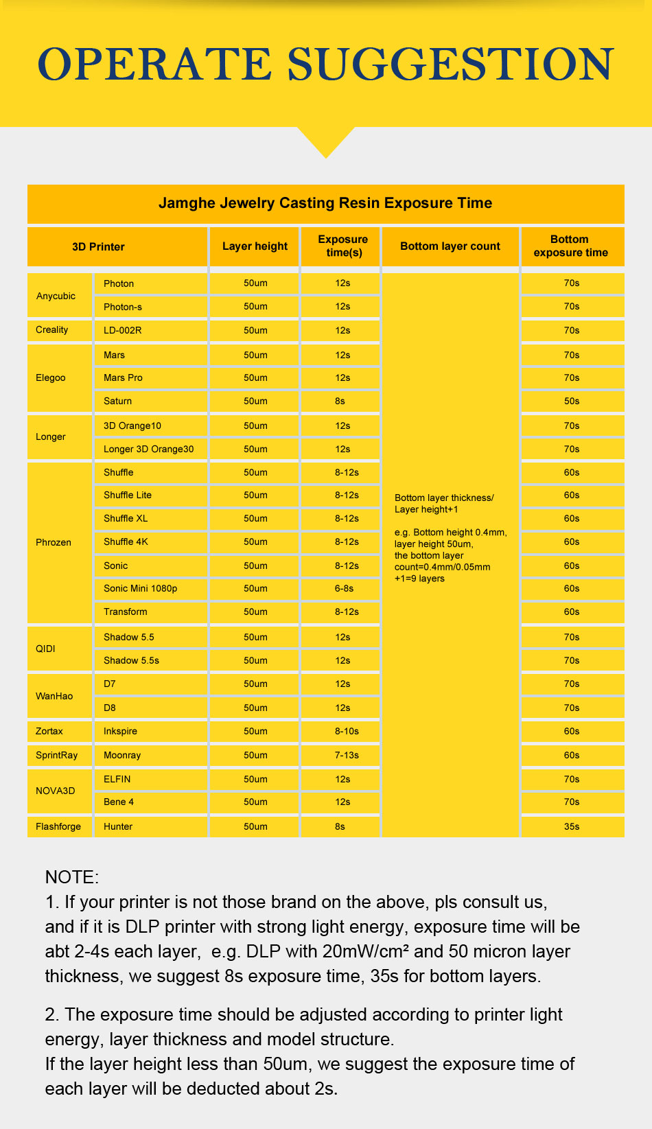 Если высота слоя менее 50 мкм, мы предлагаем, чтобы время экспозиции каждого слоя было вычтено около 2 с.