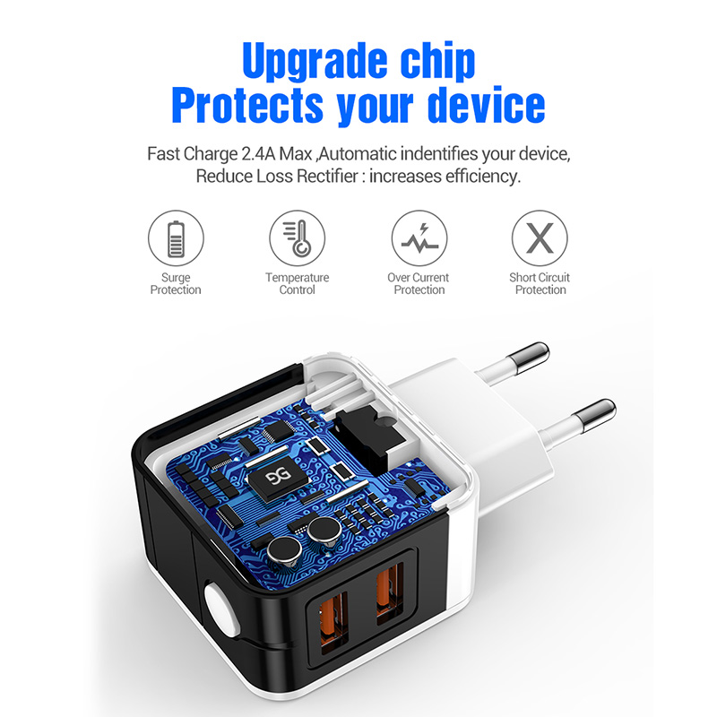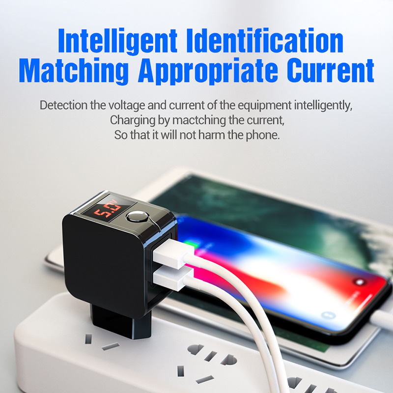 JAVY Смарт Цифровой дисплей двойной USB зарядное устройство для iPhone Samsung Xiaomi Huawei планшет зарядное устройство адаптер Быстрая быстрая зарядка телефона