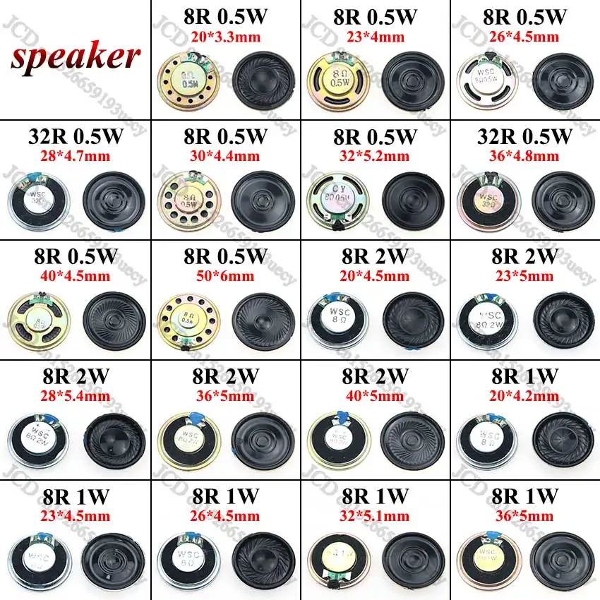 JCD 1 шт. 8 Ом 0,5 Вт 1 Вт 2 Вт 2 Вт 20 мм 23 мм 26 мм 32 мм 32 мм 40 мм 50 мм