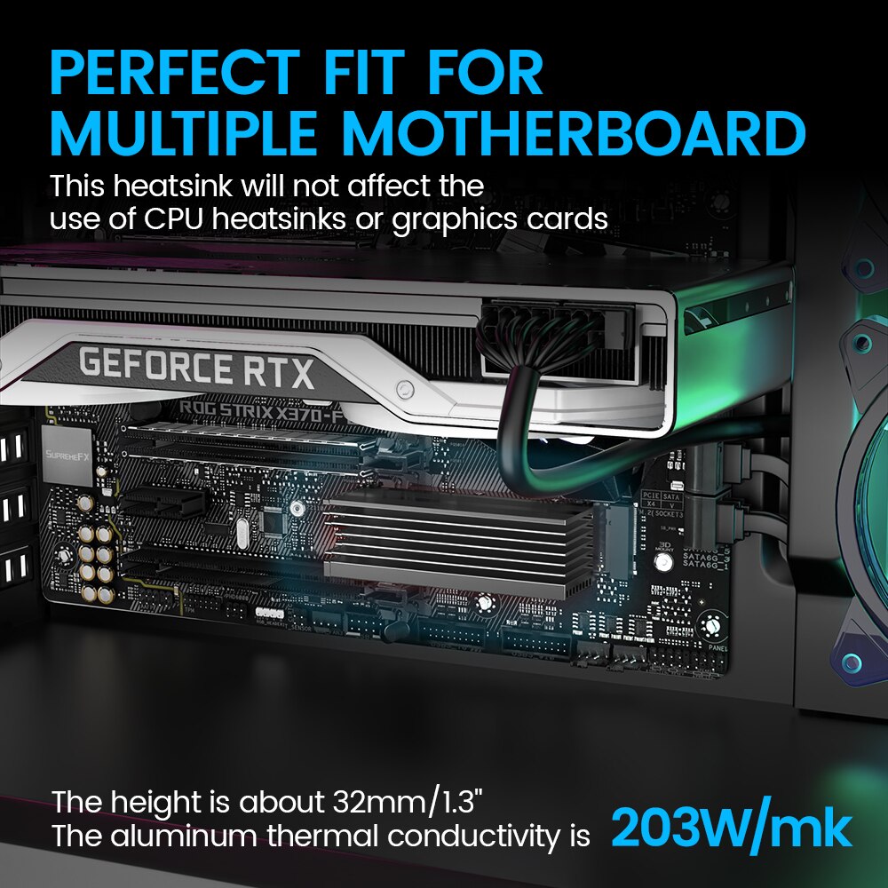 • Универсальная Совместимость :Этот радиатор совместим с твердотельными накопителями M.2 2280, что делает его универсальным дополнением к сборке вашего ПК.