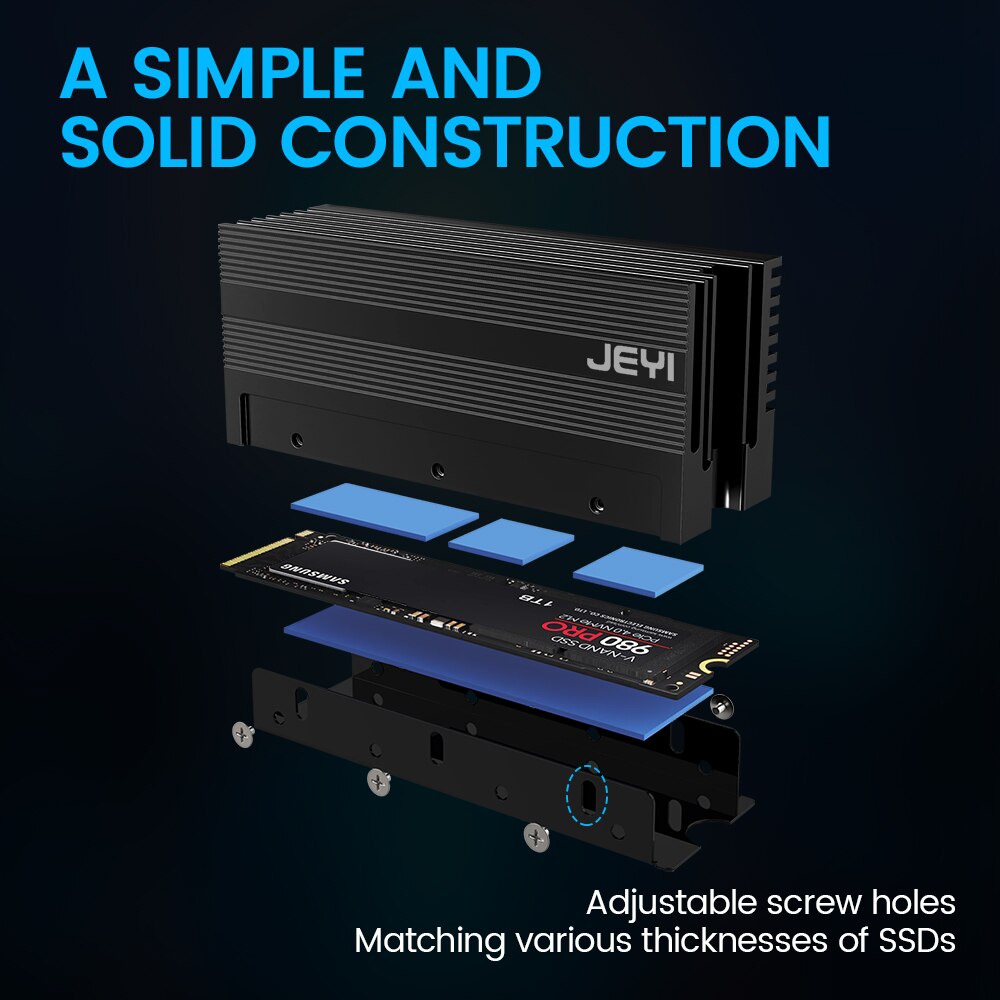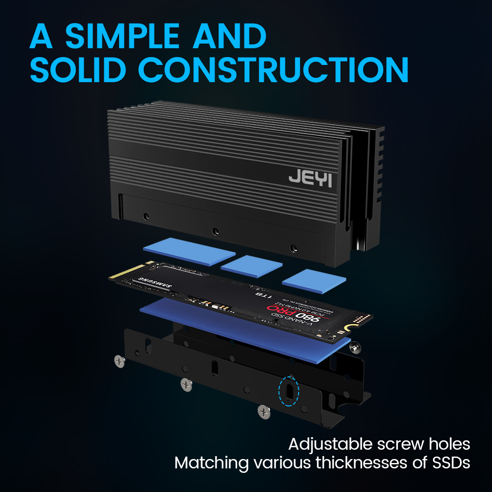 • Простая установка :Благодаря простой конструкции кулер JEYI SSD Cooler можно легко установить без использования инструментов.