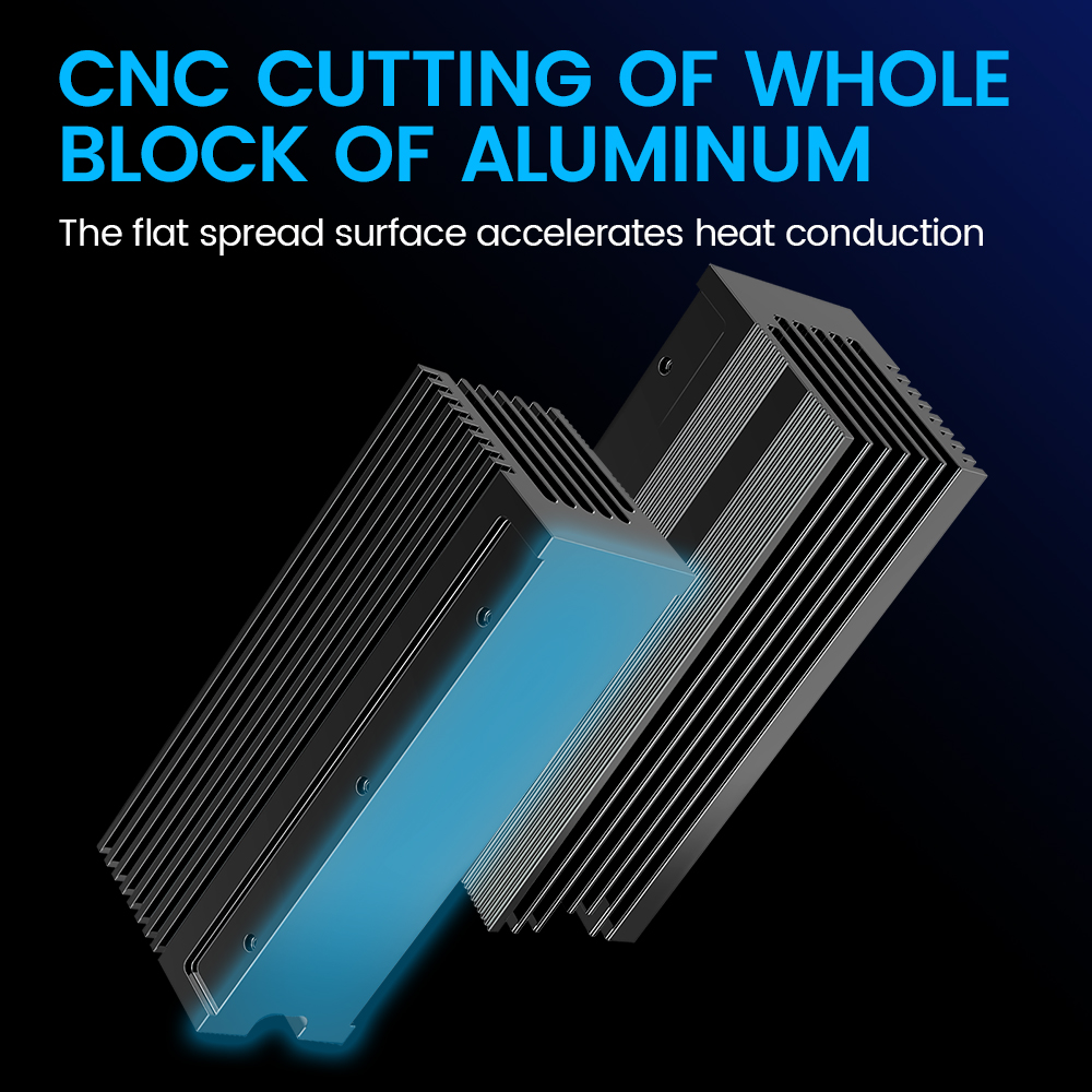 • Улучшенное охлаждение :Разработанный с радиатором и ребрами, он обеспечивает пассивное охлаждение, снижая температуру вашего SSD до 35 ℃.