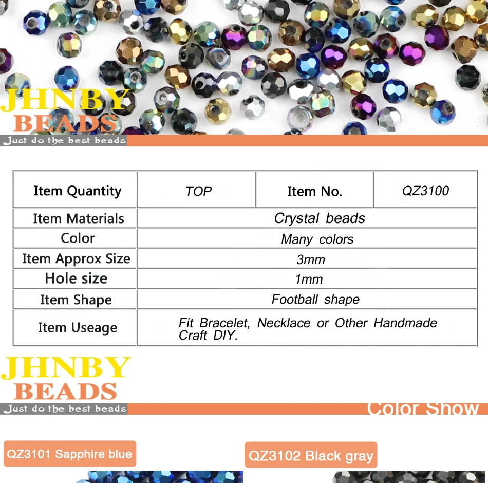 JHNBY Football Faceted Shape Austrian Crystal 200pcs 3mm Plated Color Round Loose Beads Jewelry Bracelet Accessories Making DIY