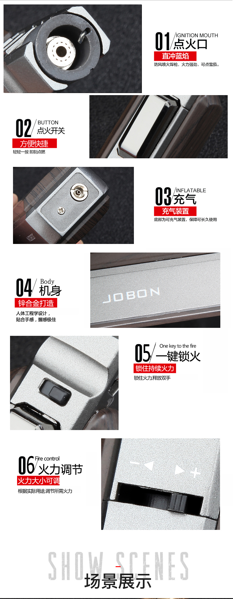 JOBON кухонная барбекю сигара Большая струя пламени турбо фонарь огненный замок регулируемая заправка Зажигалка без Бутана газа
