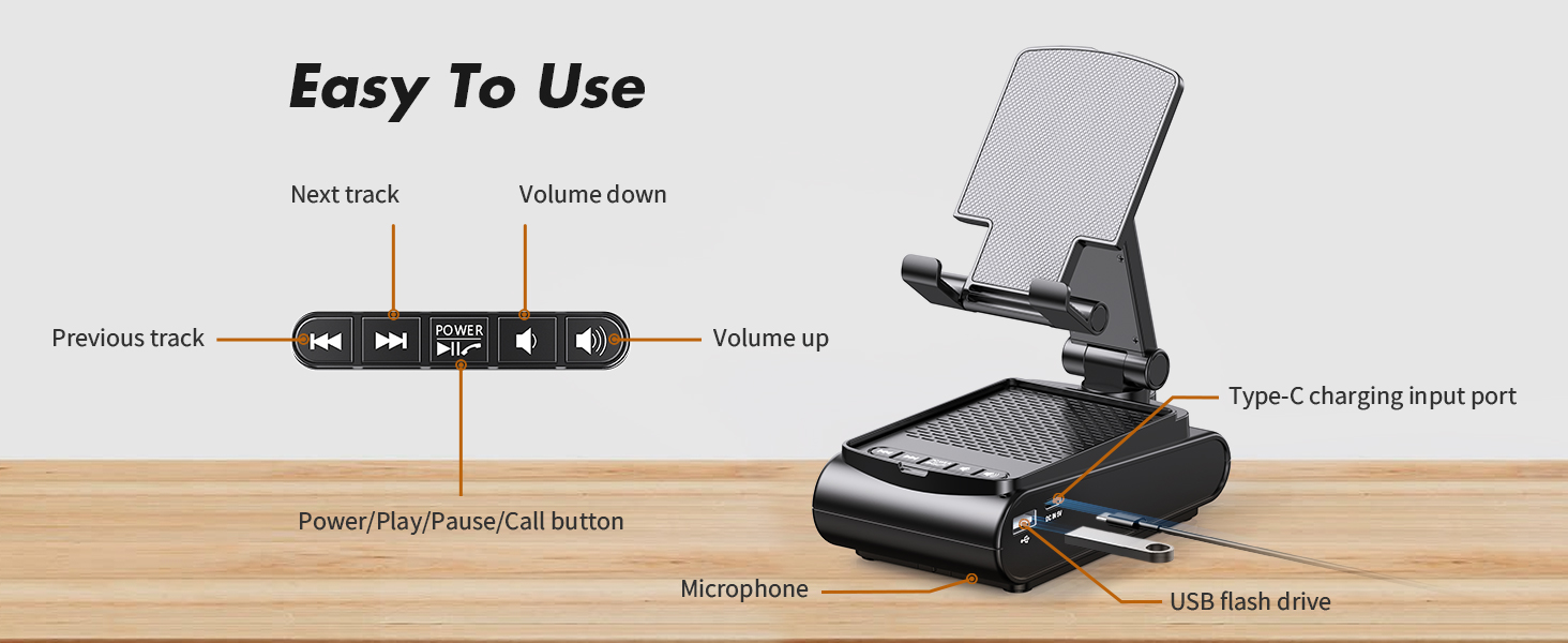 Опорный рычаг держателя телефона можно растягивать вверх и вниз, регулировать под вертикальным углом и поворачивать на 360 ° по горизонтали, что позволяет найти идеальный угол обзора для вашего устройства и сложить его для удобства переноски. Силиконовые накладки на панели держателя телефона, канавке и основании беспроводного динамика Bluetooth также обеспечивают максимальную защиту от царапин и скольжения.