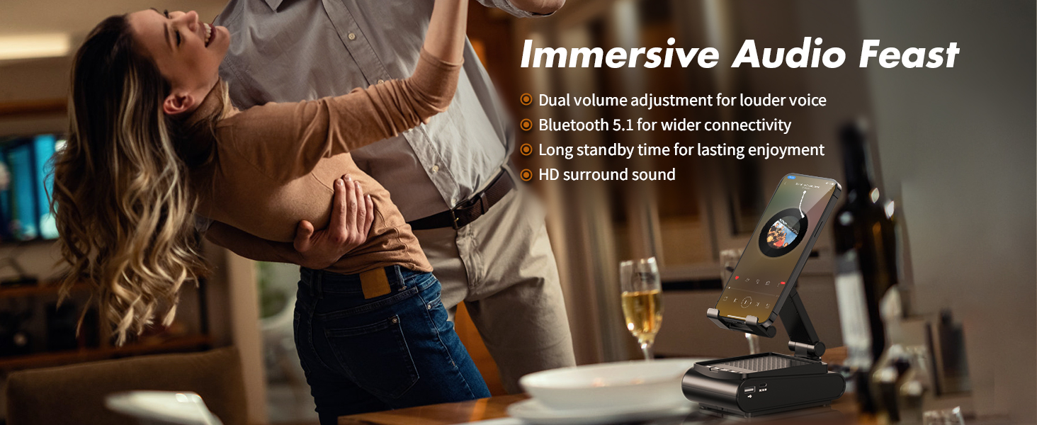 JOCEEY Подставка для телефона с беспроводным Bluetooth-динамиком, противоскользящий и HD объемный звук, регулируемый держатель для планшета и портативный динамик, подходит,adjustable tablet holder portable speaker