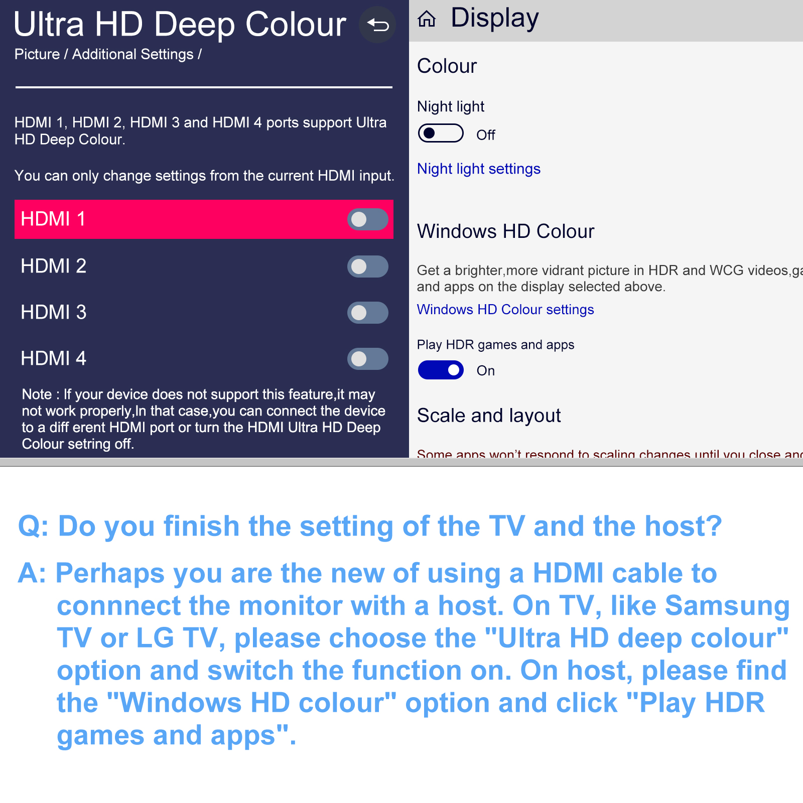 2. HDR не поддерживает: Проверьте, поддерживают ли устройства на обоих концах HDR, проверьте, включает ли устройство источника сигнала HDR, и проверьте, включило ли устройство отображения режим улучшения или оптимизации глубины цвета;