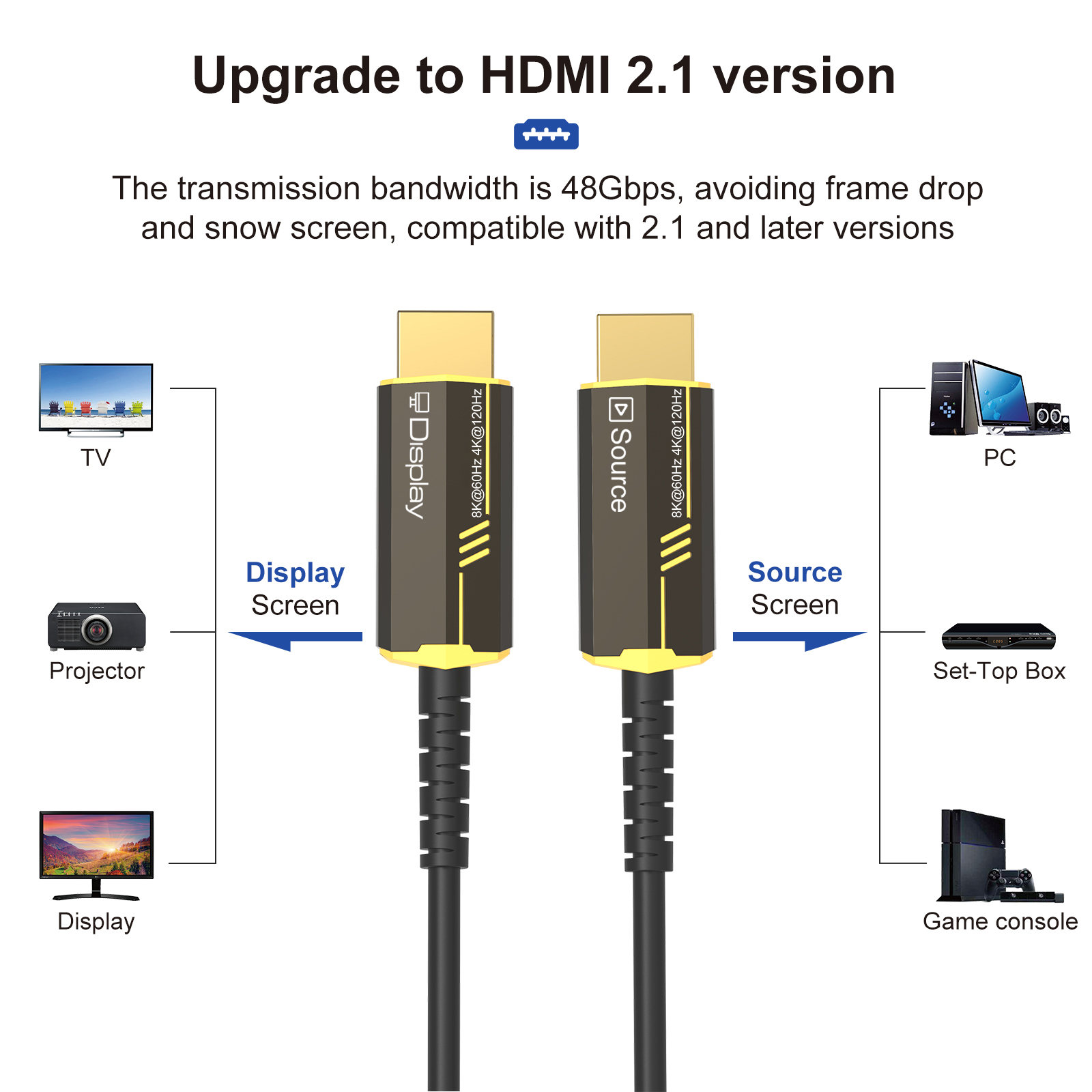 Кабель 8K HDMI, волоконно-оптический, кабель HDMI 2,1, кабель 8K 60 Гц 4K 120 Гц 48 Гбит/с eARC HDCP HDR 10 + для ТВ-приставки, ПК PS4/5