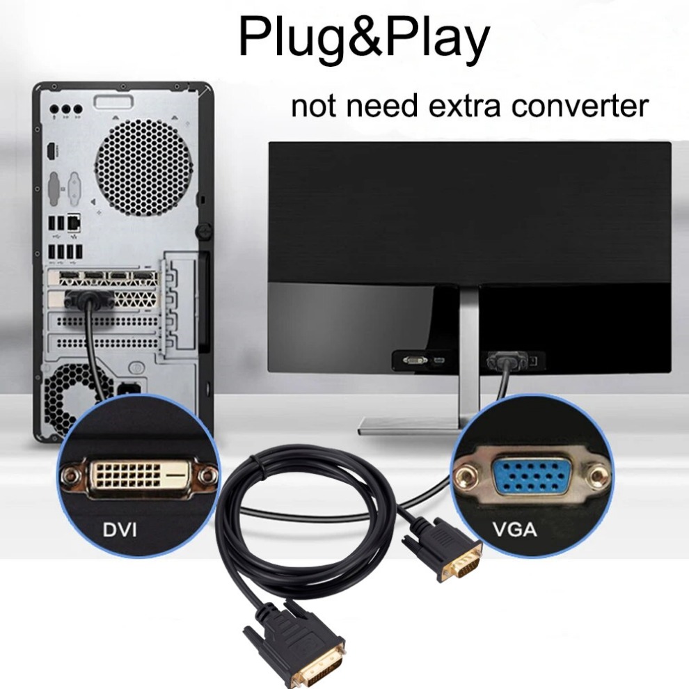 Этот адаптер DVI-VGA позволяет подключать стандартный аналоговый монитор, проектор или ЖК-дисплей, который использует разъем VGA или кабель, к ноутбуку, DVD, ТВ-приставке, проигрывателю Blu-ray, компьютеру, проектору.