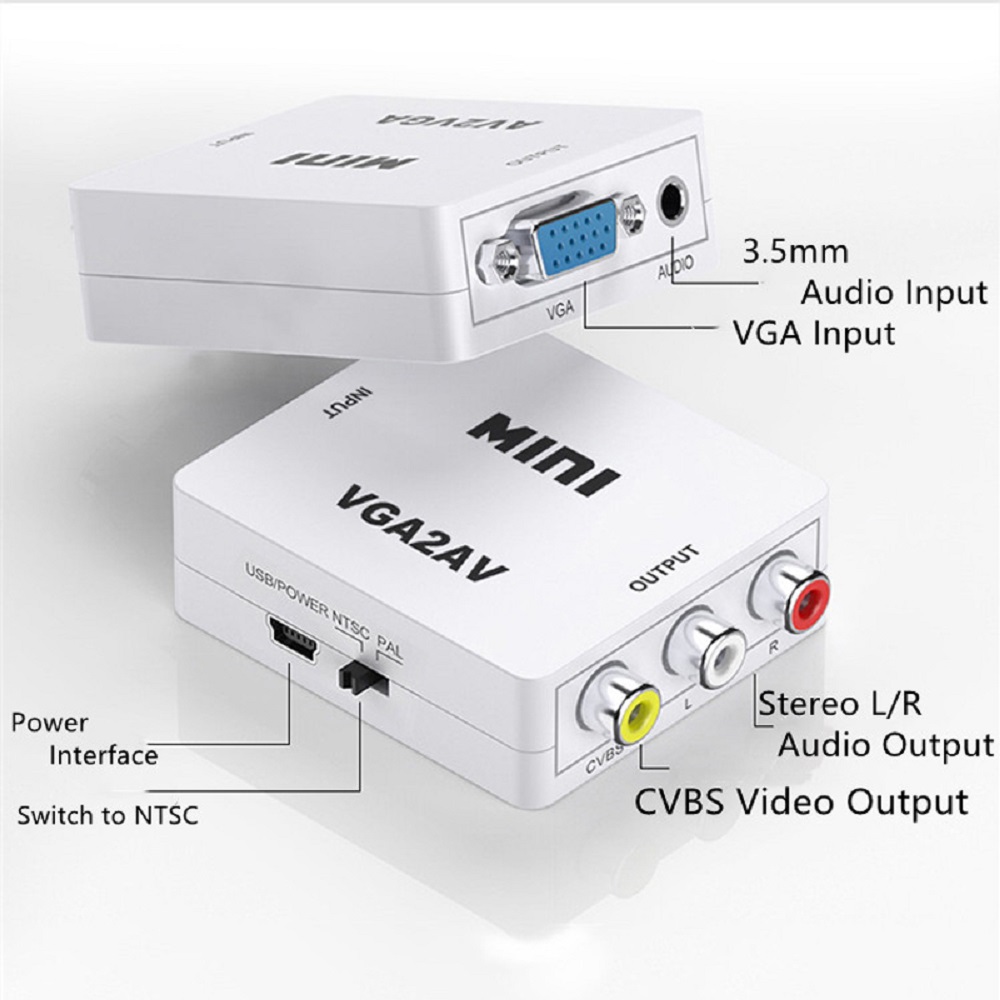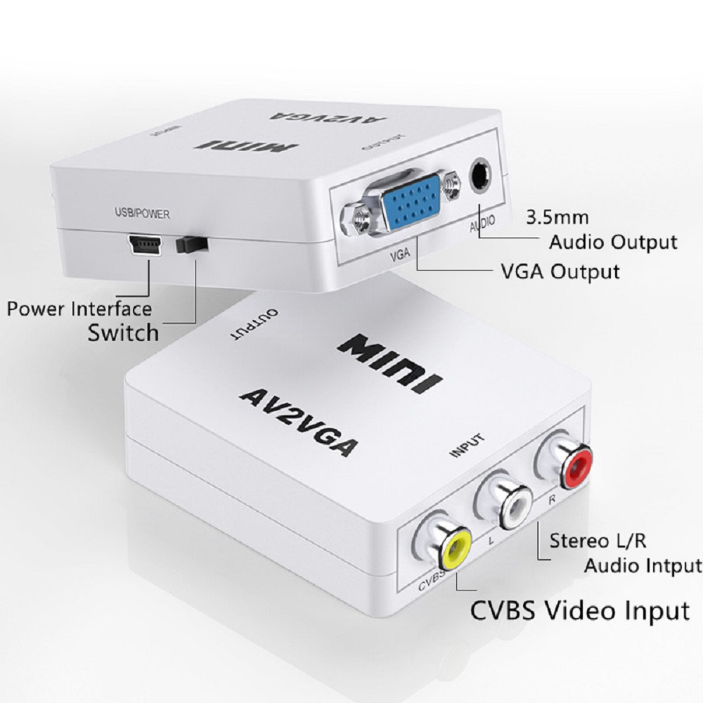 1080P AV RCA CVBS to VGA Video Converter VGA to AV Video Adapter with 3.5mm Audio for PC TV SetTop Box to HDTV Monitor Conversor