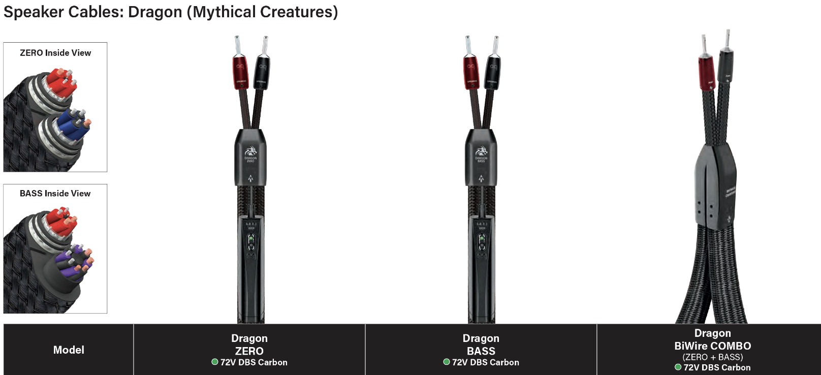 Дракон нольАкустические кабели могут использоваться одним из двух способов: либо как идеальные кабели полного диапазона, либо, в сочетании со специальным кабелем BASS, в кабельной сборке BiWire с беспрецедентными характеристиками. В кабелях Dragon BASS используется наша запатентованная синфазная технология подавления шума, что, когда это возможно, дает ощутимую дополнительную причину для BiWire.