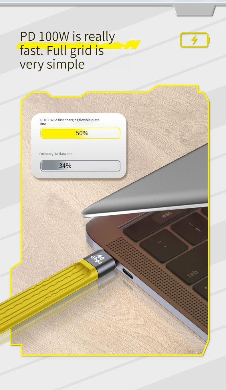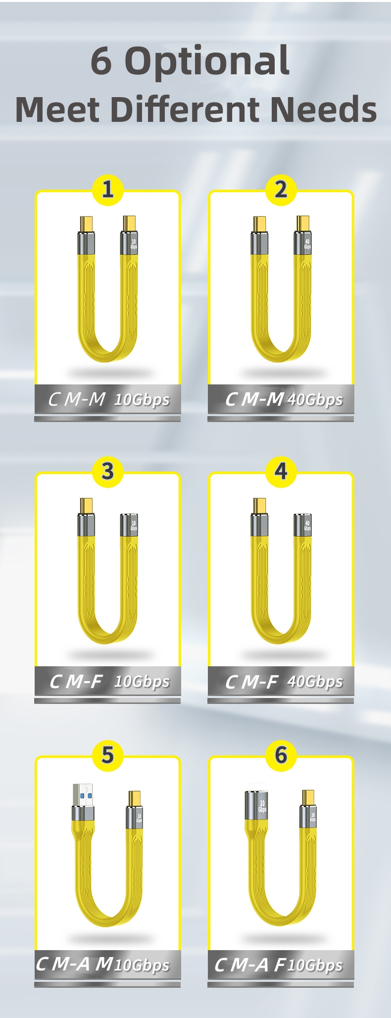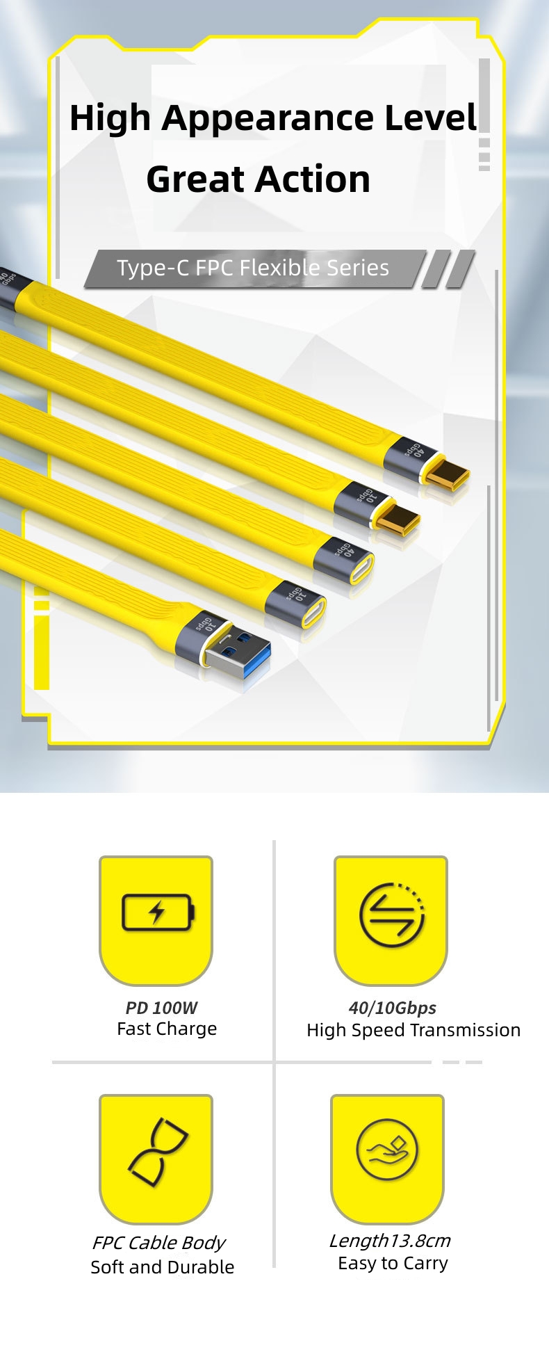 Кабель для передачи данных USB 4.0 Gen3 Thunderbolt 3 PD 100 Вт 5A Быстрая зарядка Кабель USB C-Type C 40 Гбит/с 4K @ 60 Гц Кабель FPC Кабель для мягкой платы